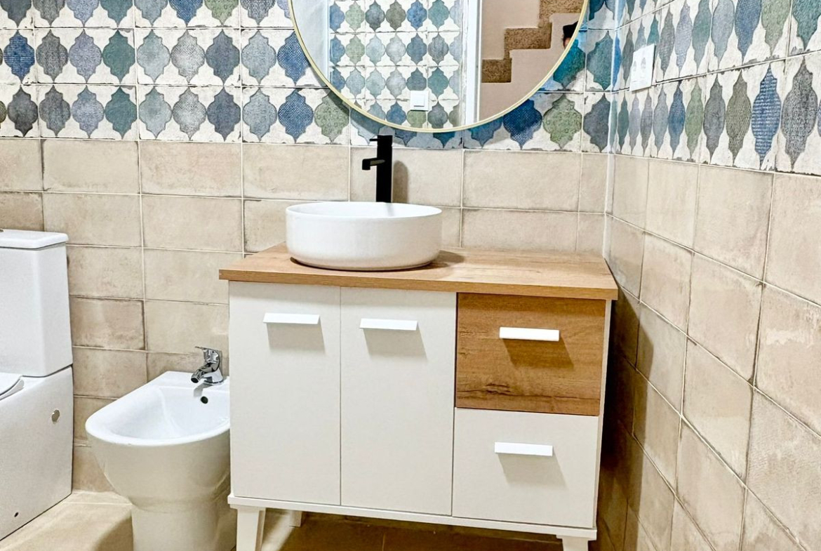 The house has been completely renovated with all installations replaced. Ready to move into. Partialy furnished with full fitted kitchen.