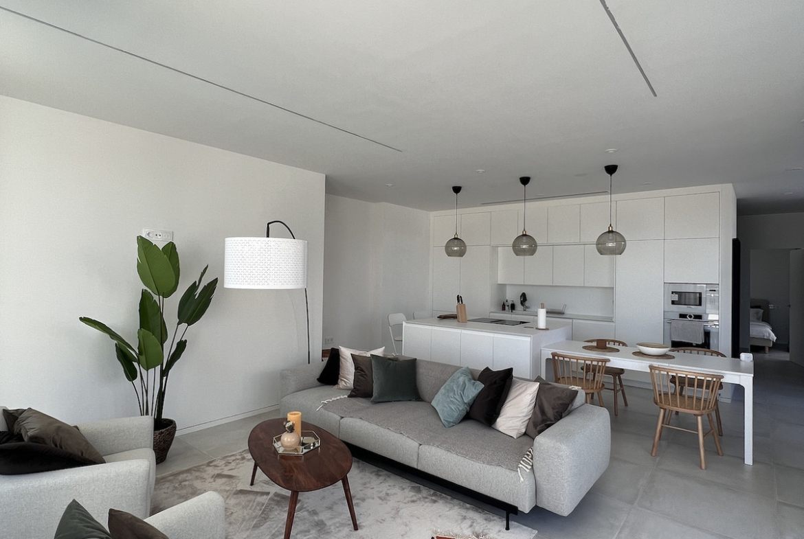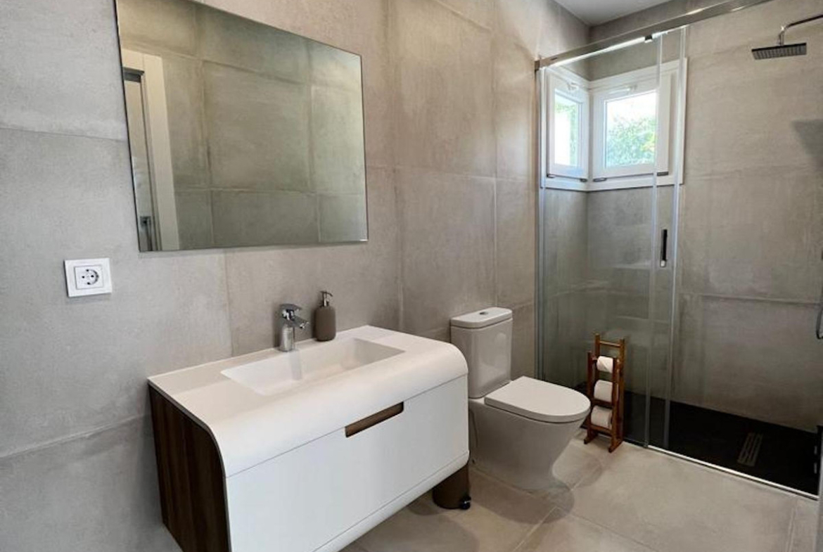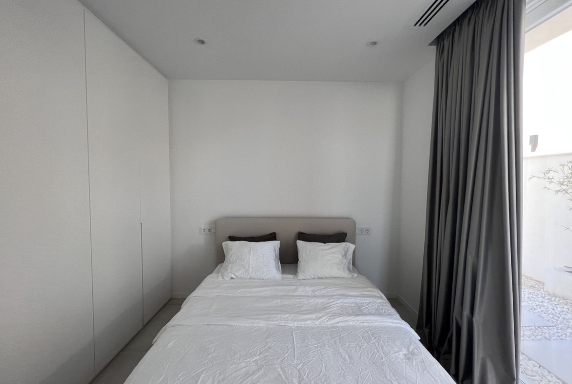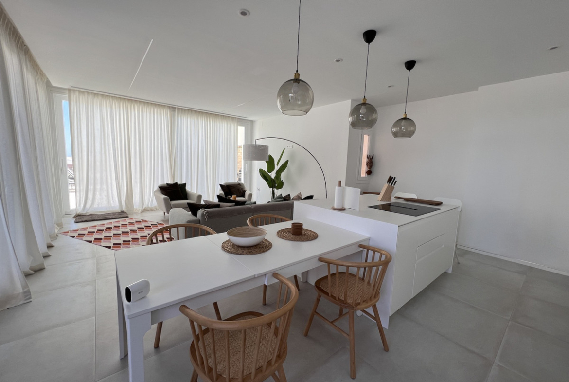 Upon entering the house, consisting of a grand living room, dining area and open plan kitchen, as well as a guest ensuite bedroom. From here one has direct access to both the front southwest facing terrace and the rear patio, which has been featured with an open-air solarium and pool area.