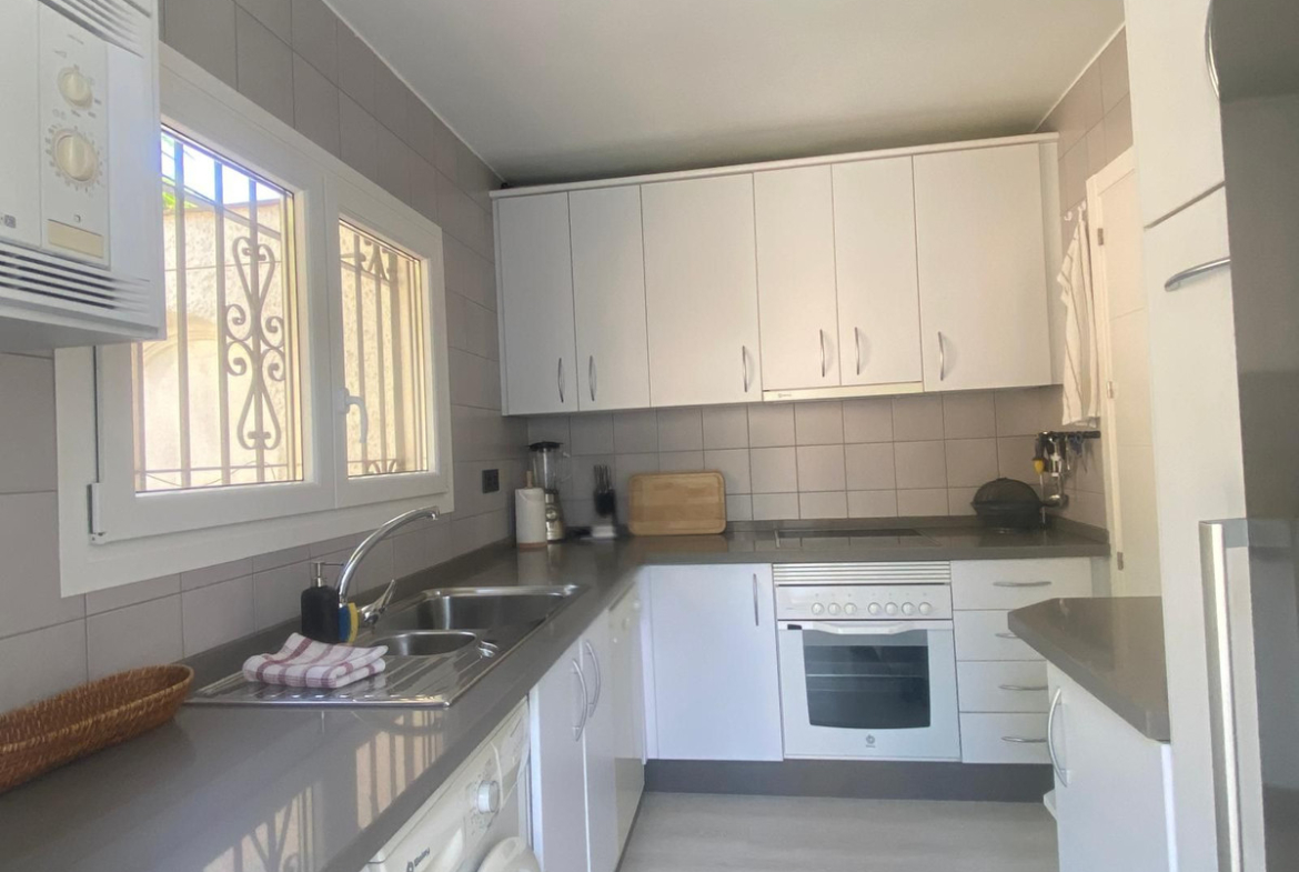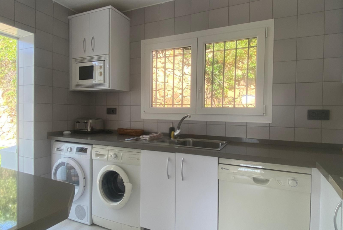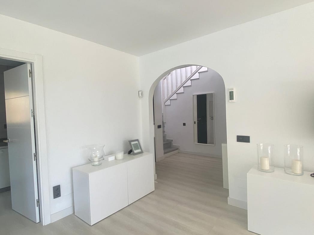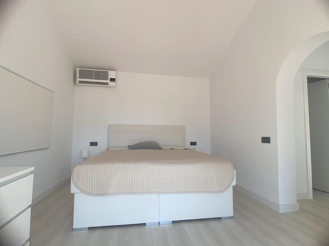 The property is distributed over two floors. On the ground floor, you’ll find a spacious and inviting living-dining room with a gas fireplace, a fully equipped independent kitchen, two bedrooms, and a full bathroom. The upper floor features the master bedroom with en-suite bathroom, built-in wardrobes with a dressing area, a storage room, and access to a sunny rooftop terrace with partial sea views.