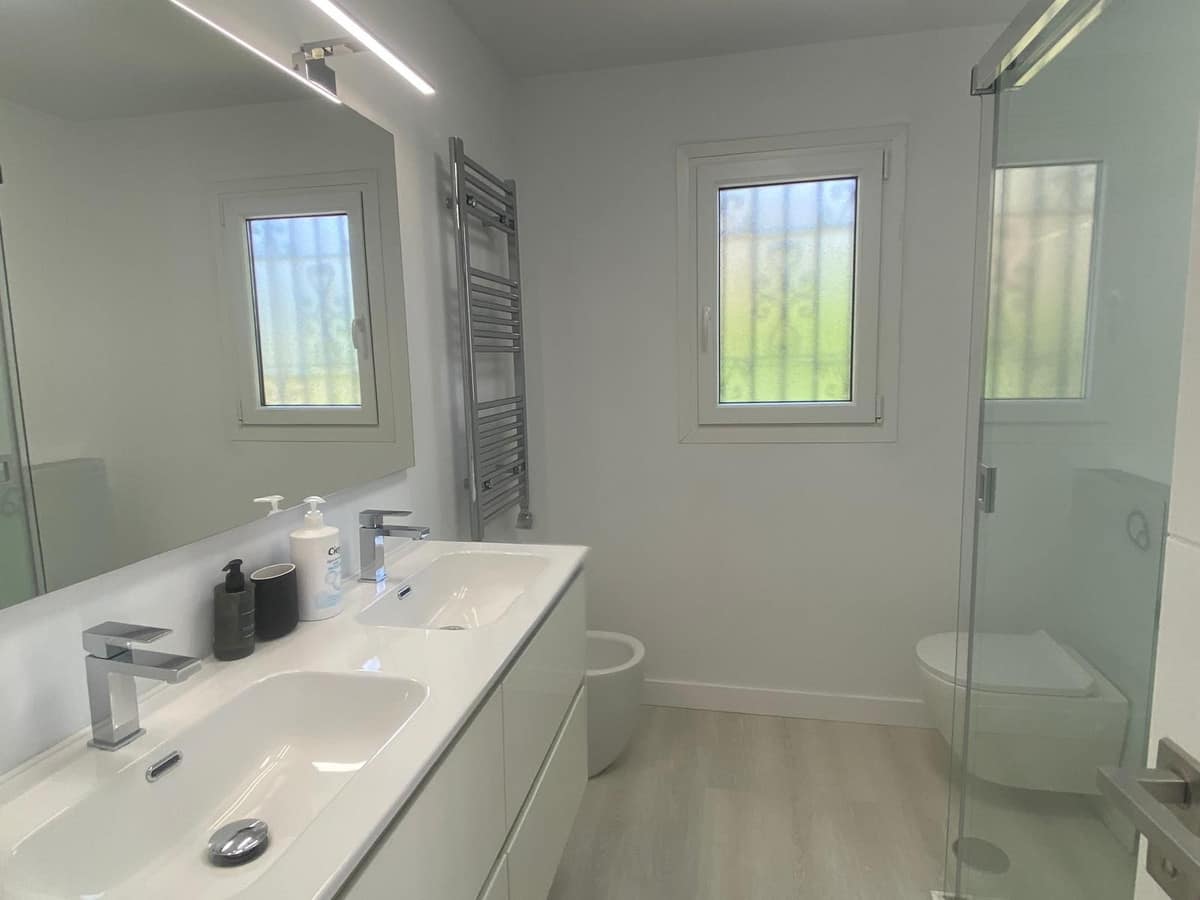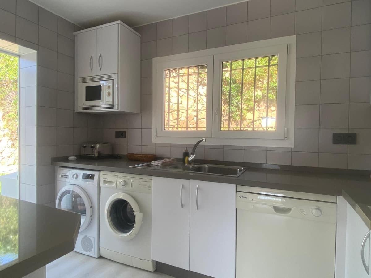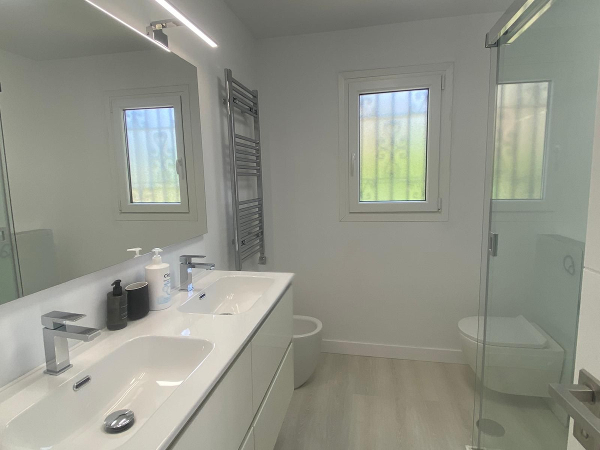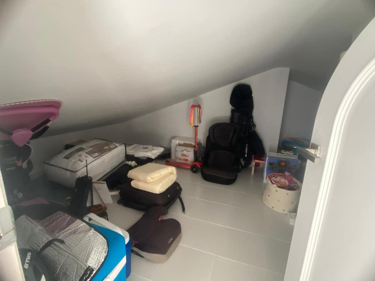 The property is distributed over two floors. On the ground floor, you’ll find a spacious and inviting living-dining room with a gas fireplace, a fully equipped independent kitchen, two bedrooms, and a full bathroom. The upper floor features the master bedroom with en-suite bathroom, built-in wardrobes with a dressing area, a storage room, and access to a sunny rooftop terrace with partial sea views.