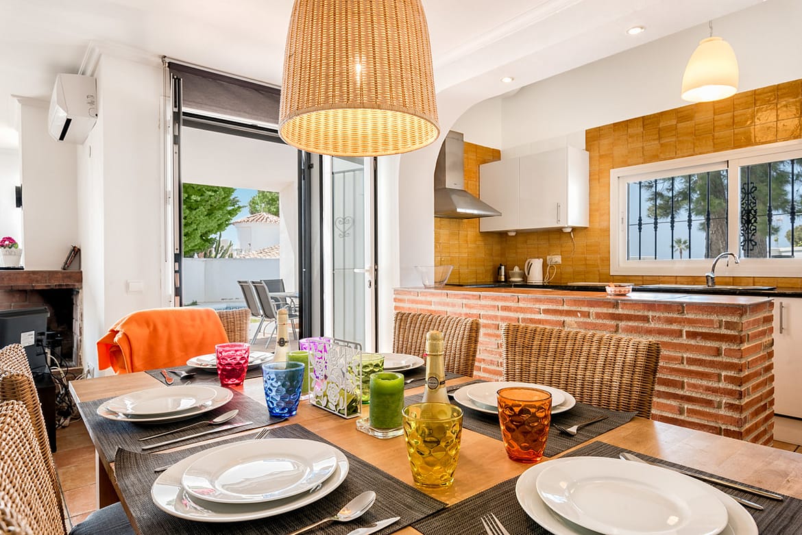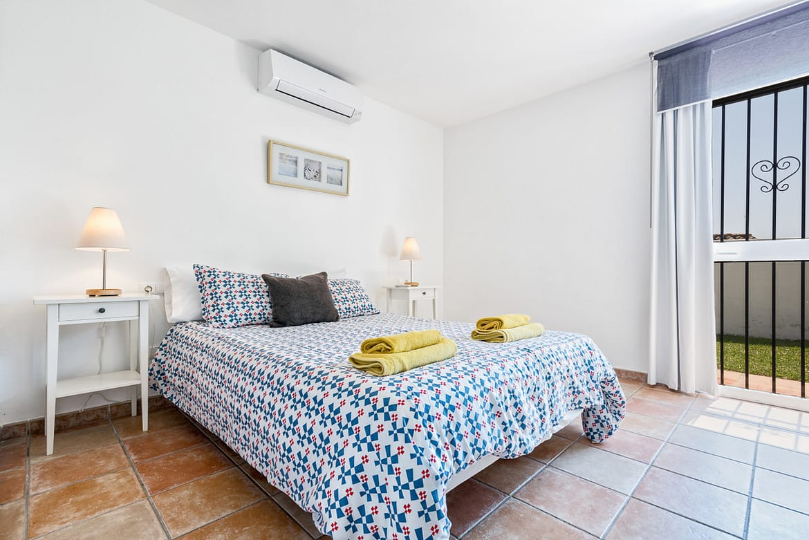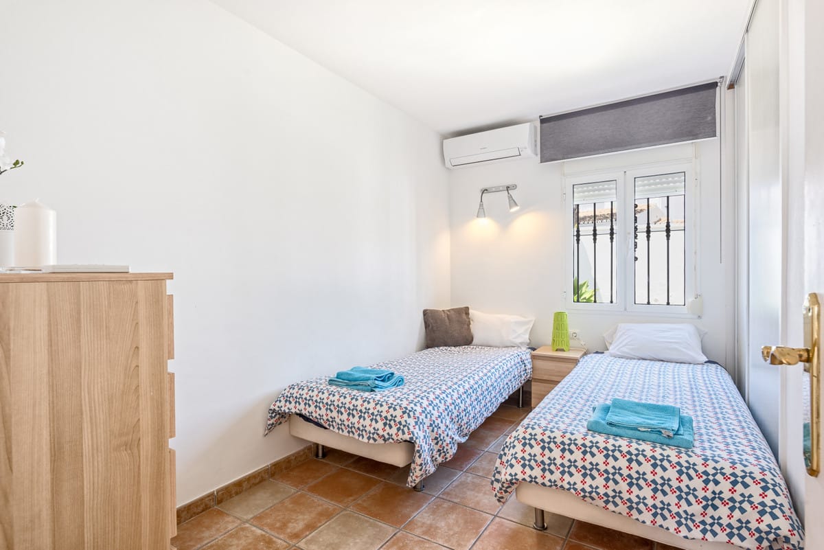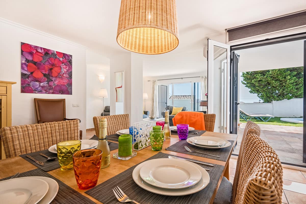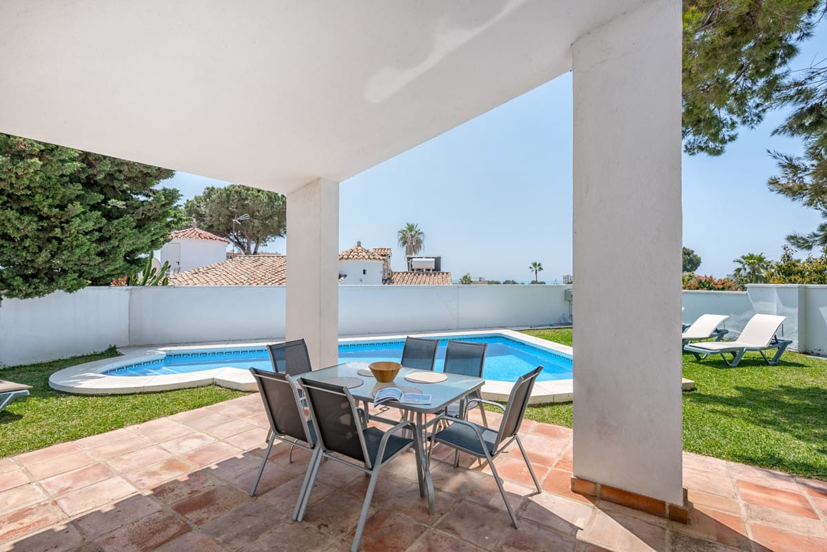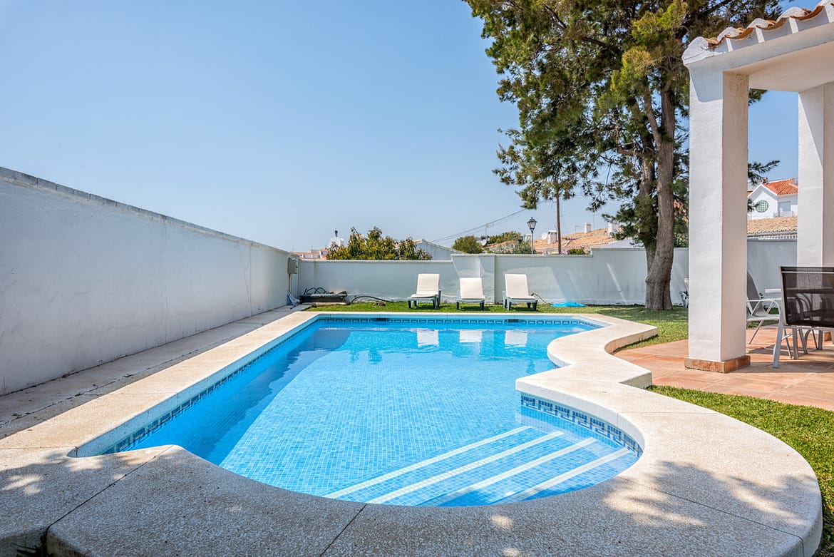 3 bedroom, 2 bathroom (both with showers only, no baths) villa with private pool. This three bedroom, two bathroom private villa is situated in a quiet residential street in the Urbanisation Calypso with off street parking. Only a 10 minute walk from shops, restaurants and bars and only a 15 minute walk to Calahonda beach. The villa has a fully fitted kitchen with oven, hob, fridge/freezer and microwave. It has a private gated garden with 3.5 x 6m private swimming pool, private garden and large patio/terrace. The villa has air conditioning / heating in all 3 bedrooms and the lounge. This villa has recently upgraded its furnishings and decorations and has a colourful summery feel! Perfect for families and couples of all ages.