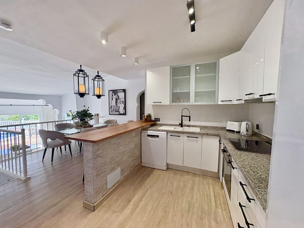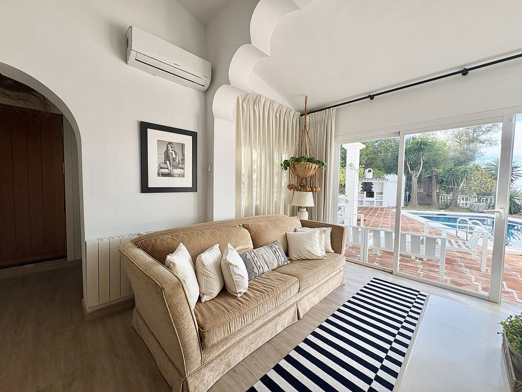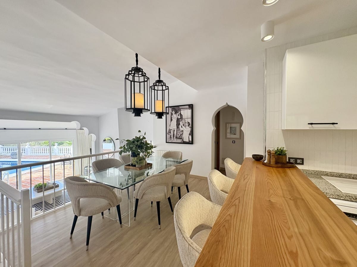 This Beautiful South facing 3 Bedroom villa is located in the peaceful and residential urbanisation El Rosario in East Marbella – just a 10 minute drive to the centre of Marbella and a 35 minute drive to Malaga Airport.