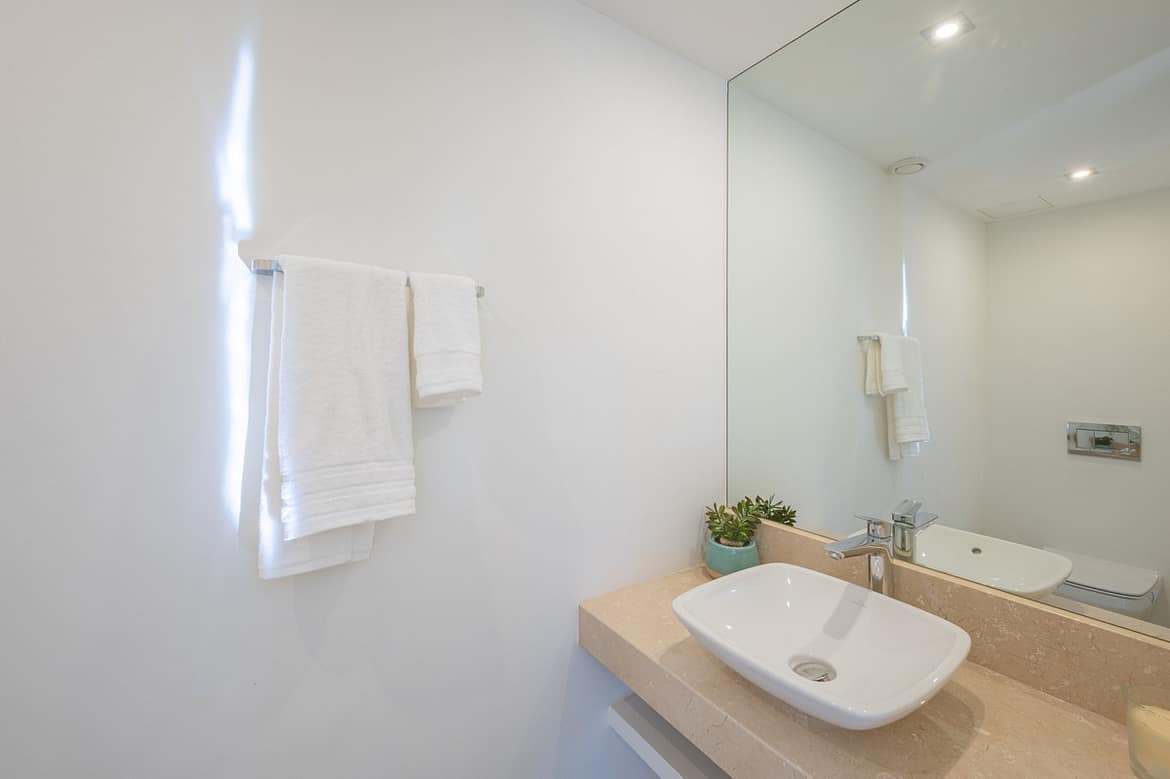 The main house, spread over one floor, has a spacious living room, a fully renovated kitchen, three bedrooms with en-suite bathrooms, and a guest toilet.