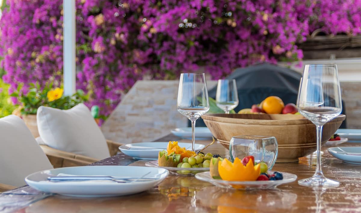 Inside the villa, you will find a fully fitted kitchen with modern appliances, making it a chef's dream. The open plan living and dining area is bright and spacious, with a fireplace adding a cozy touch. All opening out onto the covered terrace with sitting and dining areas that continue into the garden.