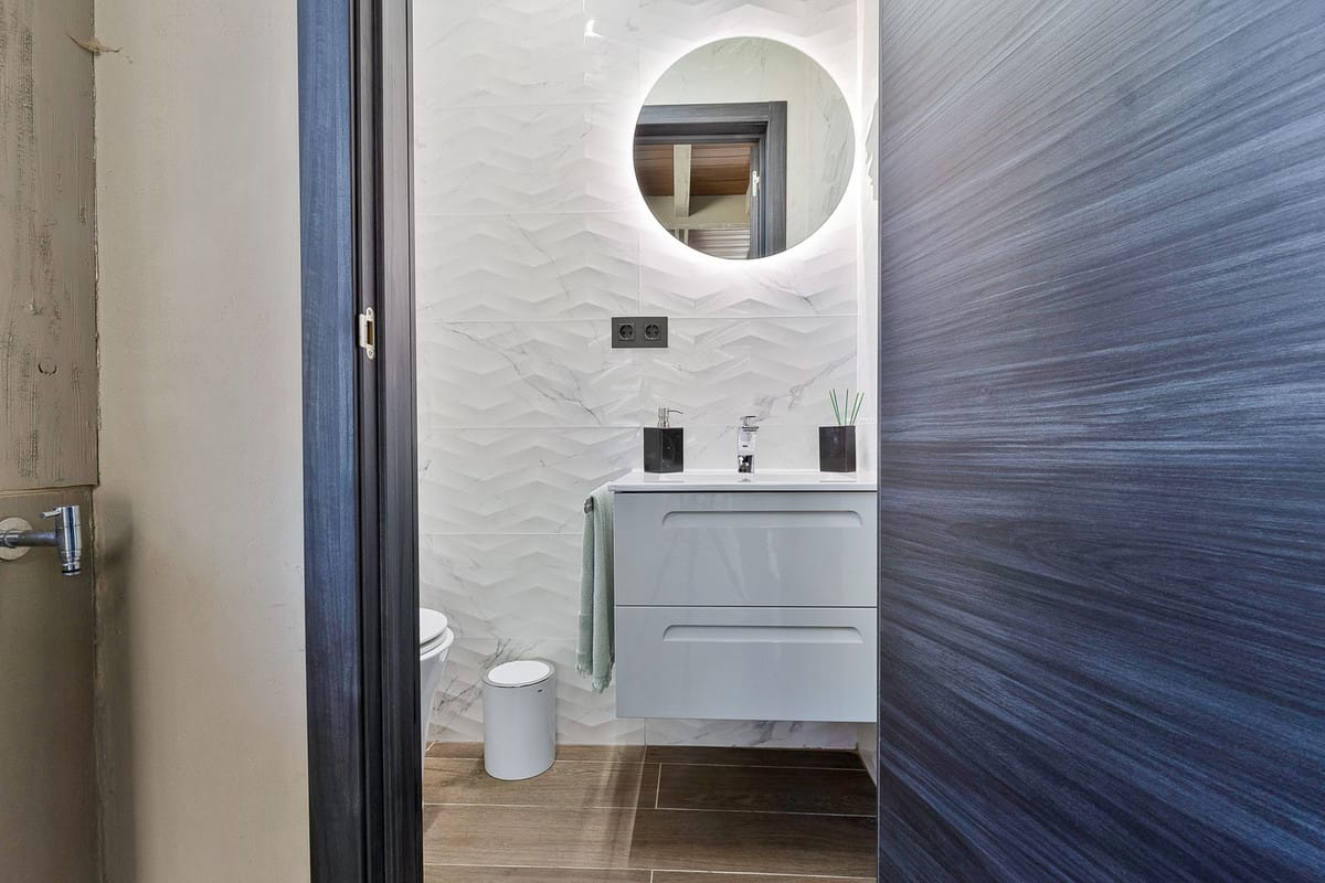 ✅ Master suite of 56 m² with a stylish en-suite bathroom and mirror-effect ceiling.
