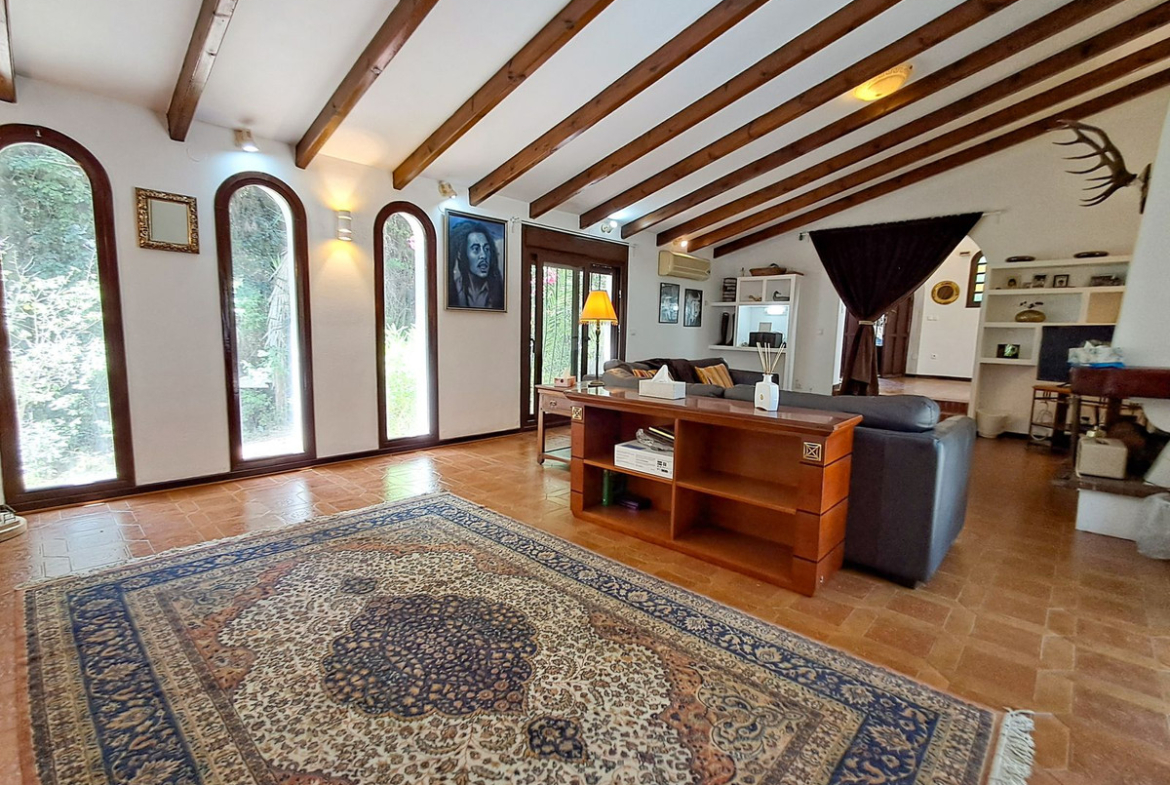 The villa stands out for its unique architectural features, such as vaulted ceilings that enhance natural light and stained-glass details at the entrance, giving it a refined and timeless style. Its majestic presence awaits a new owner ready to unlock its full potential. Additionally, a cozy fireplace adds warmth and personality to the home.