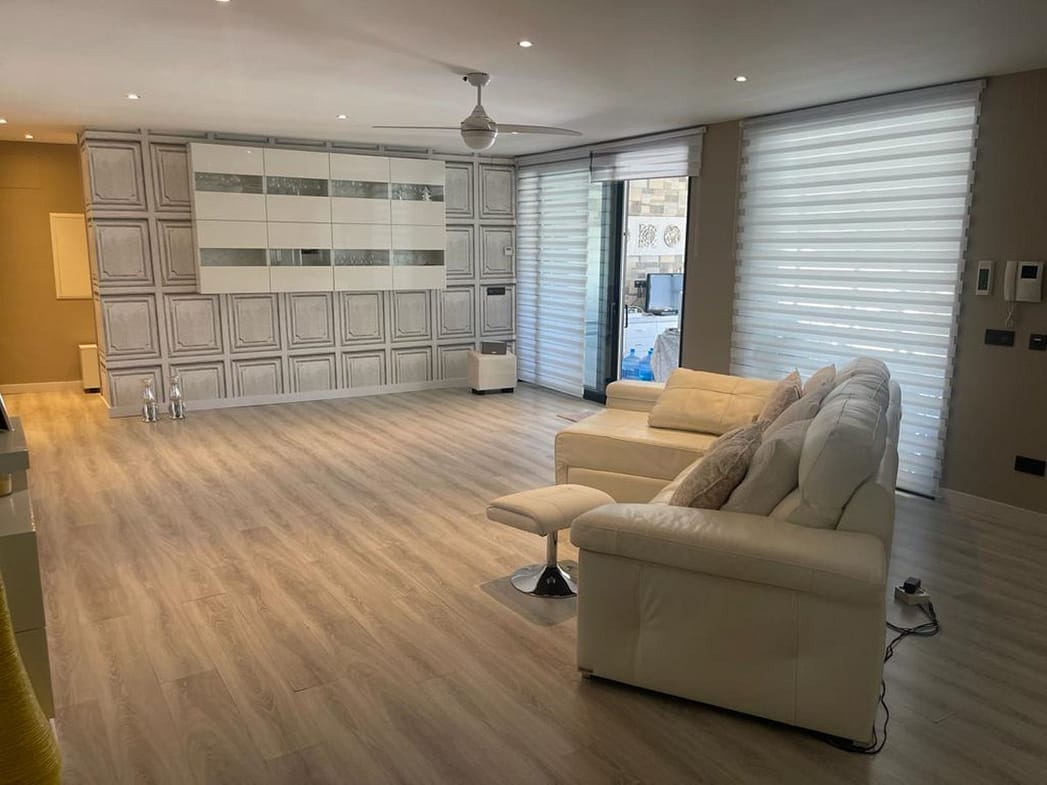 The villa has 3 spacious and exterior bedrooms with fitted wardrobes, along with two complete bathrooms. The fully fitted and equipped kitchen is a kitchen lovers dream. The spacious living and dining room opens onto a private garden and swimming pool, from where you can enjoy partial sea views.