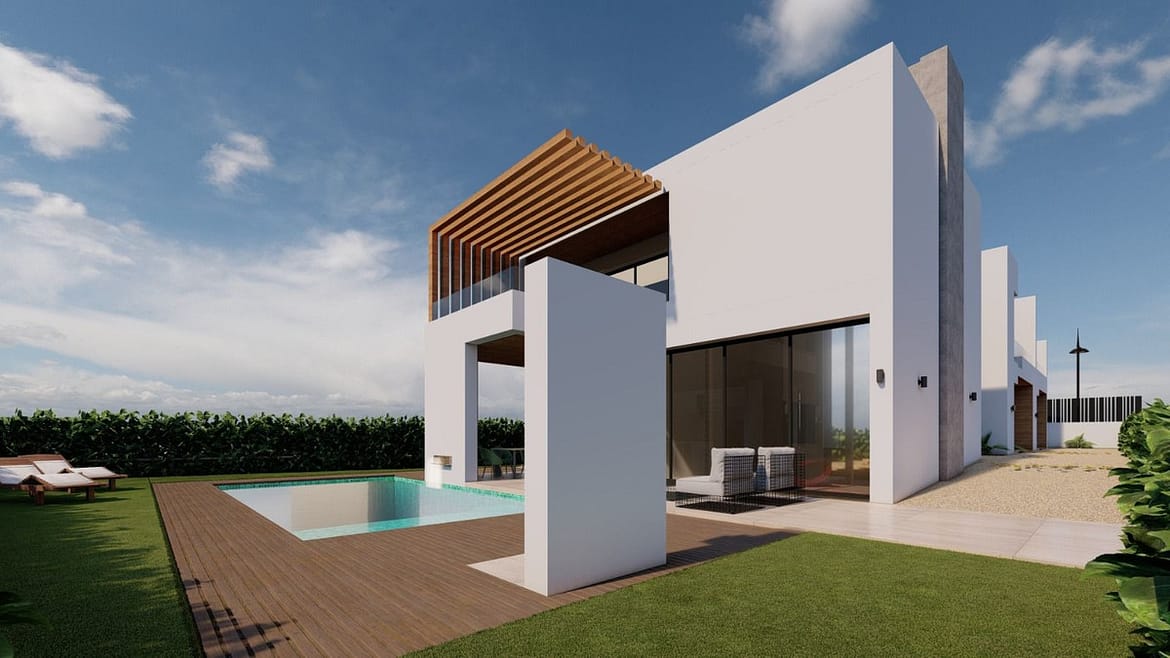 On the ground floor, you will find a welcoming entrance hall, cloakroom, en-suite bedrooms with bathroom and dressing room, a dream kitchen-dining room, a spacious living room and a main porch that opens onto a magnificent outdoor skimmer pool with pre-installation for a heat pump. The upper floor houses the master bedroom with the option of converting the second bedroom into a library and a terrace to enjoy the views. The basement is presented raw, except for the machine room, offering a blank canvas to personalize to your liking.