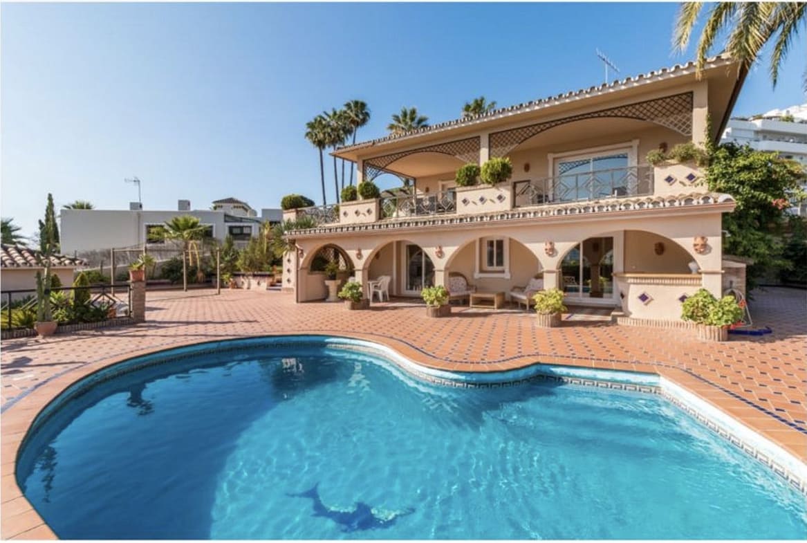 The master suite is located on the upper floor and has doors opening on to a terrace. The formal drawing room has double aspect views, a working fire place and sliding doors on to a large covered terrace. From the drawing room an arch leads to the formal dining room which easily seats 8 persons and further in to a good size fully fitted kitchen which also have access from the hall. The ground floor offers two double bedroom suites, an additional kitchen facilitating the BBQ area and a second reception which currently is used as a snooker room. Again doors open to a sunny covered terrace.