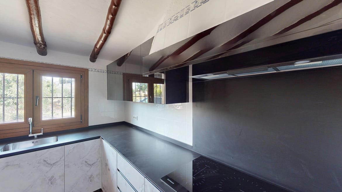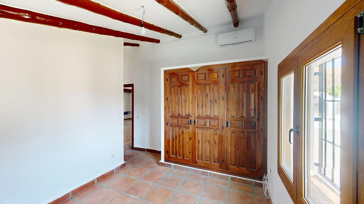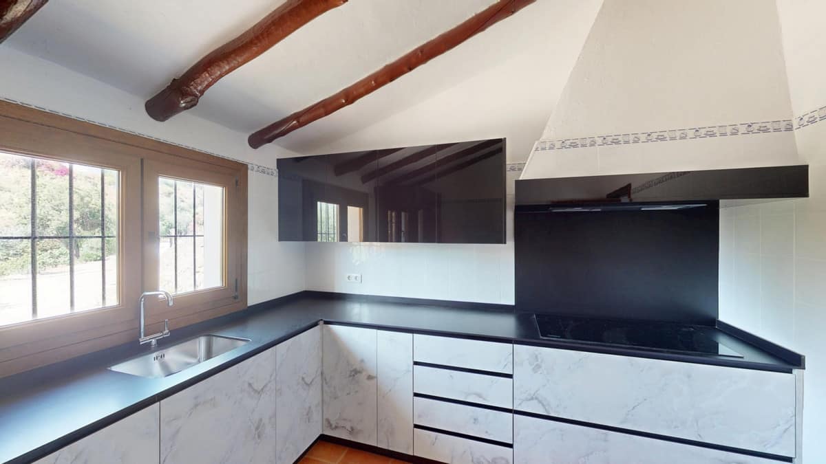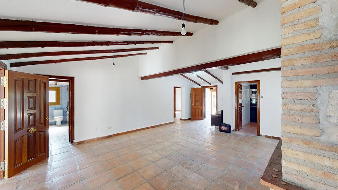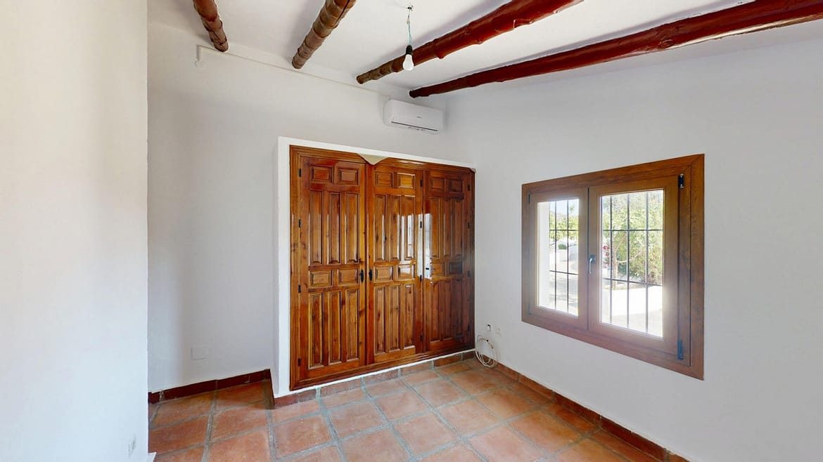 This delightful Spanish villa, located in Viñuela, Málaga, offers a perfect blend of traditional charm and modern comfort. The single-story property spans 167 m2 and features three bedrooms, including a spacious 13.9 m2 primary bedroom, and two bathrooms. Upon entering, you're greeted by the home's most striking feature: beautiful terracotta tile flooring that runs throughout, creating a cohesive and authentic Spanish ambiance. The living areas are characterized by their high, sloping ceilings with exposed wooden beams, adding rustic charm and visual interest to the space. The heart of the home is undoubtedly the living room, which boasts a magnificent stone fireplace as its centerpiece. Large windows and glass doors in this area, as well as in the bedrooms, allow ample natural light to flood the interiors while offering picturesque views of the surrounding landscape. The kitchen presents a harmonious blend of traditional and contemporary design. Modern appliances and sleek cabinetry are juxtaposed against the rustic ceiling beams, creating a functional yet aesthetically pleasing culinary space. The bathrooms, while not extensively detailed in the images, appear to have been updated with modern fixtures. Storage is thoughtfully incorporated throughout the home, with built-in wooden wardrobes in the bedrooms that maintain the overall rustic aesthetic. The property also features two patios, offering delightful outdoor spaces for relaxation and entertainment. A unique aspect of this villa is its attention to decorative details, such as the ornate tile borders in the hallways and bathrooms, which add a touch of traditional Spanish flair to the otherwise simple and elegant interiors. Outside, the villa boasts a beautiful pool and a charming outdoor area perfect for enjoying the Mediterranean climate. Overall, this Málaga villa offers a warm, inviting atmosphere that beautifully marries traditional Spanish architectural elements with modern comforts, creating a truly special living space. We are pleased to be able to present this dream property to you soon, either personally or via virtual viewing. Because this world is unique – just like our Axarquía. In Andalusia. On the Costa del Sol. Here, on the sunny side of life…