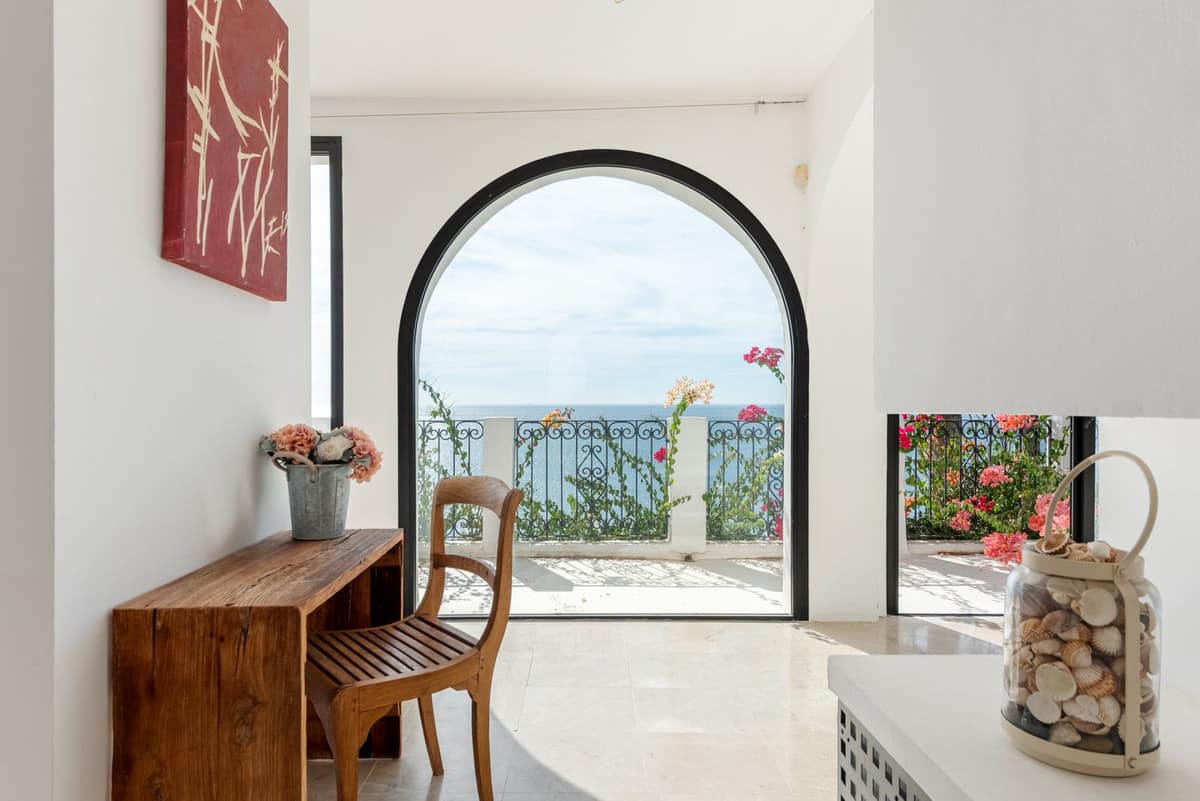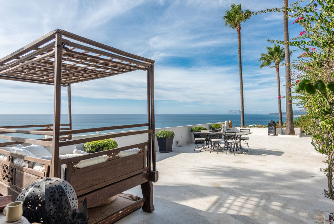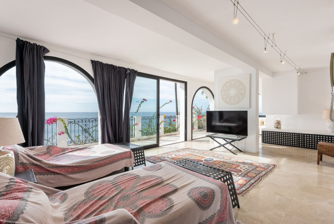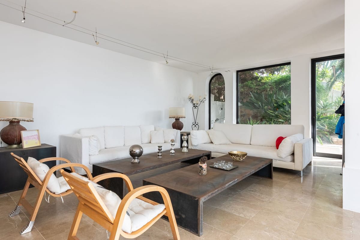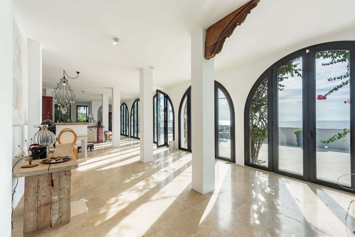 The house features three bedrooms but also offers exceptionally spacious living areas, with the possibility to create additional bedrooms if desired. The view is truly spectacular – from all bedrooms and social areas you are greeted by a sweeping sea view that is arguably one of the best along the entire coast. The location is close to the beach, just a few minutes’ walk from one of the Costa del Sol’s most beautiful beaches.The open-plan layout creates a bright and airy feel, and every room has direct access to its own terrace. The generous terraces, the mature and private garden, and the private pool make this home perfect for both relaxation and social gatherings.