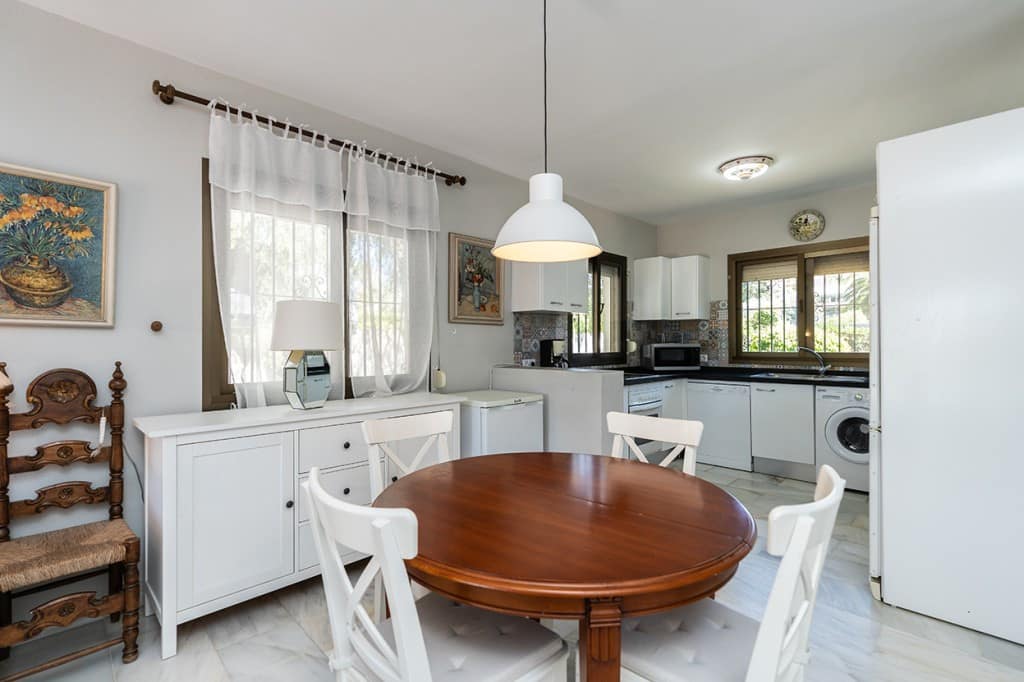 Beautiful villa with private pool and with sea views in Marbesa in East Marbella offering on two levels three bedrooms, two bathrooms, a guest toilet, ample living room with open plan kitchen and with covered terrace, private garden and pool. In the basement there are two storage rooms but the whole basement could be converted into living area, creating lots of possibilities. Private parking space. Very high rental potential. The property is a couple of minutes walking from the beach.