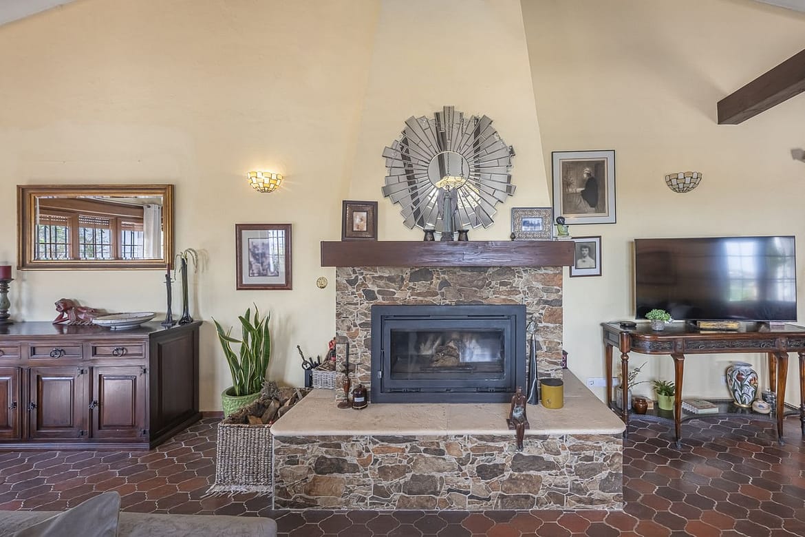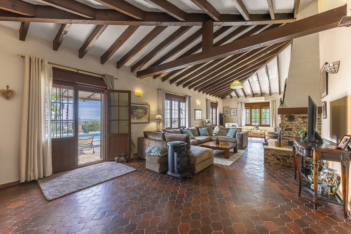 Outside, the various patios and terraces surround a private pool where the sun shines all day. The property also offers parking for more than four vehicles, several storage rooms, and its own well that supplies water to the gardens and fruit trees that adorn the estate. Among its modern amenities are solar panels with battery storage, providing energy efficiency and sustainability.