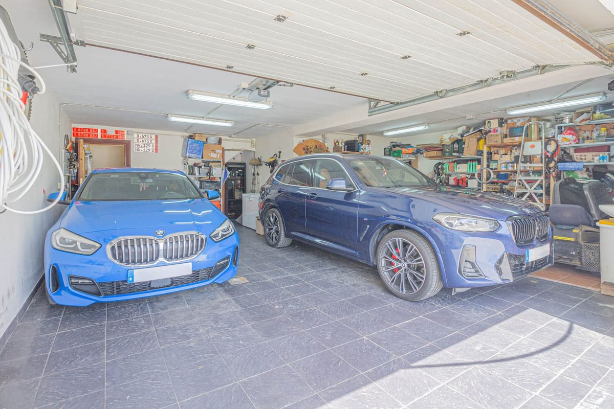 The villa has a private garage with capacity for two vehicles and additional storage space.