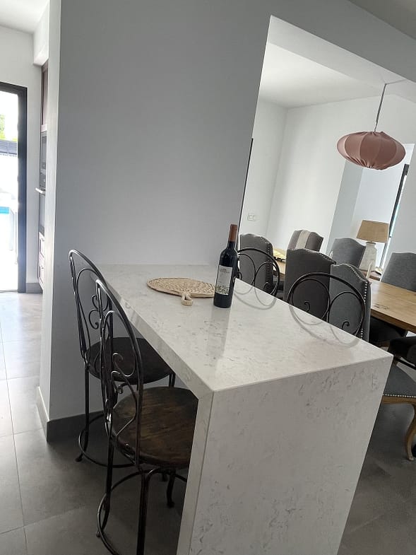 The villa has three bedrooms, each with an en-suite bathroom, arranged around a charming interior patio that provides a touch of serenity and privacy. It also has a laundry area and built-in wardrobes that add functionality to the space.