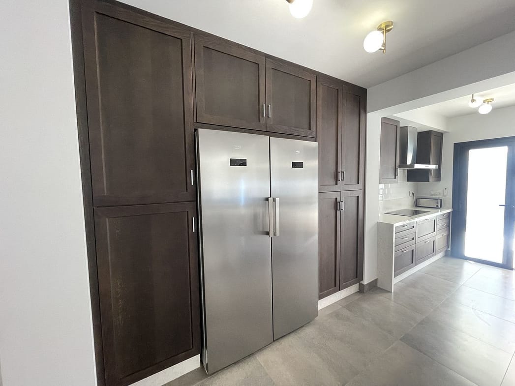 The exterior is simply stunning: a large pool with a shower and sun loungers invites you to relax in the sun. You'll also find a separate covered parking area for two cars, ensuring comfort and security for your vehicle.