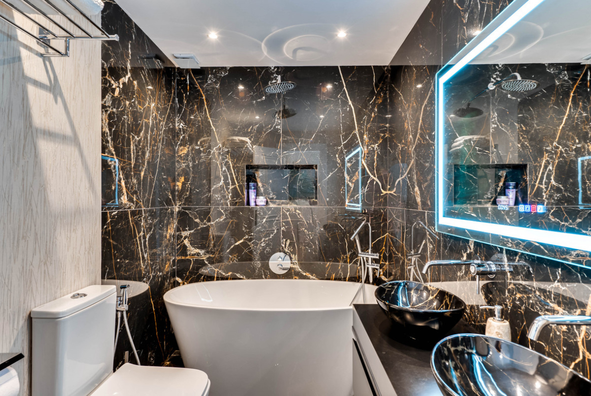 A standout feature is the top terrace, transformed into a sophisticated bar and chill-out space for entertaining. Residents can enjoy access to two outdoor pools, an indoor pool, and the added security of a gated community. The property also includes underground parking for extra convenience.