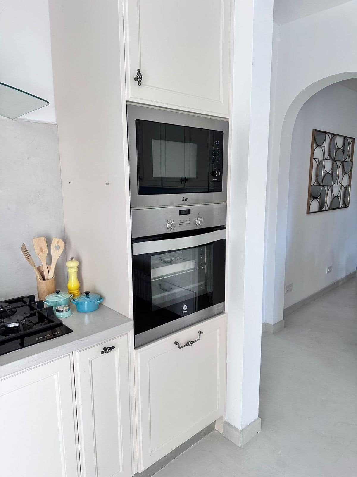 The house is set on a fully fenced plot of over 6300m² and it features plantation of olive trees, along with a large variety of fruit trees. The property has town water and connection to irrigation water.