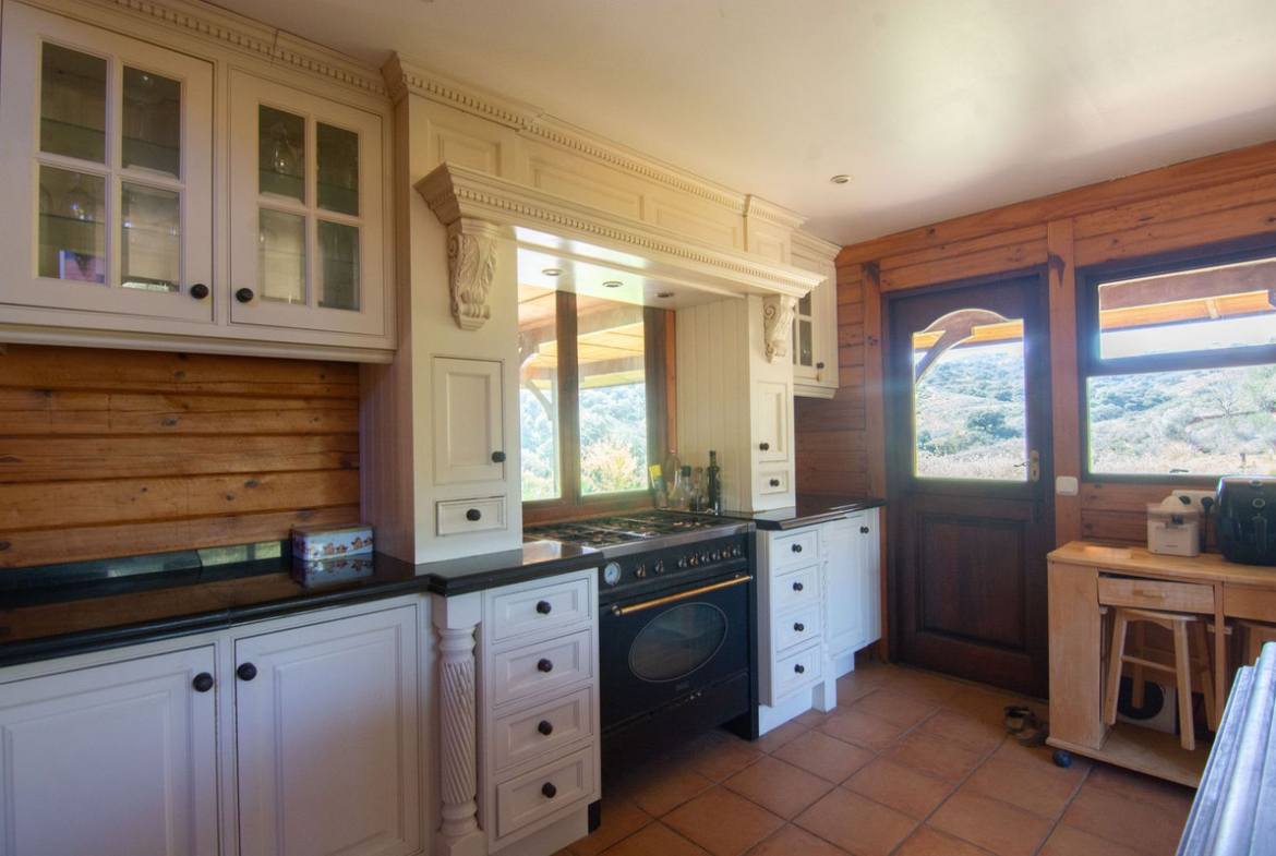 This charming finca, located in Mijas Costa, offers a solid wooden house with stunning open views of the surrounding mountains. Nestled in a protected natural area between La Cala Golf and La Mairena, the property is fully fenced and includes facilities for up to 4 horses, with boxes, a riding arena, and a tack and hayloft. The main house features 3 spacious bedrooms, each with an en-suite bathroom, and an open-plan kitchen and living area. Additional amenities include air conditioning, a fireplace, solar panels, water tanks, and a small cabin. The plot spans 6,200 m², offering both privacy and natural beauty.