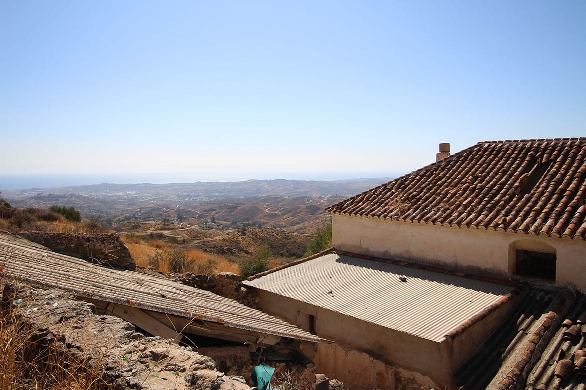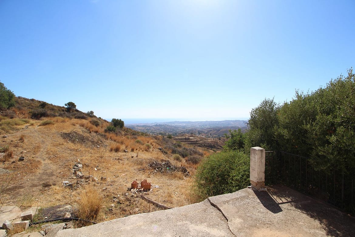IN MIJAS WITH PANORAMIC SEA VIEWS AT €32/M2 – 20.000 sq of land with a 293 sq CORTIJO to be reform. Water, electricity and septic tank in place