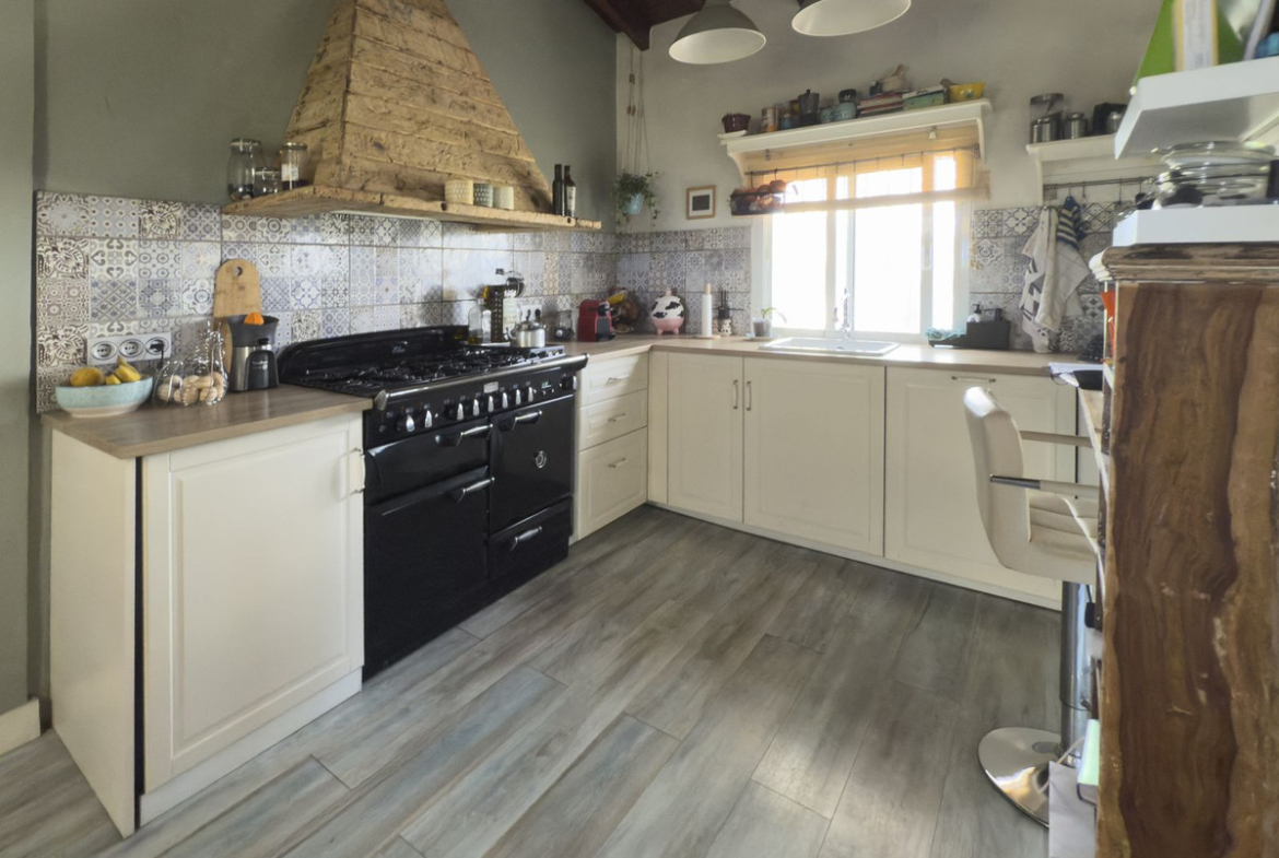 A swimming pool enhances the outdoor living experience, perfect for enjoying the serene surroundings. The property is well-equipped with a water filtration system, multiple water deposits (20,000L + 10,000L), a private pond with capacity of 40,000 ltrs and a private well. Mains electricity is also connected.