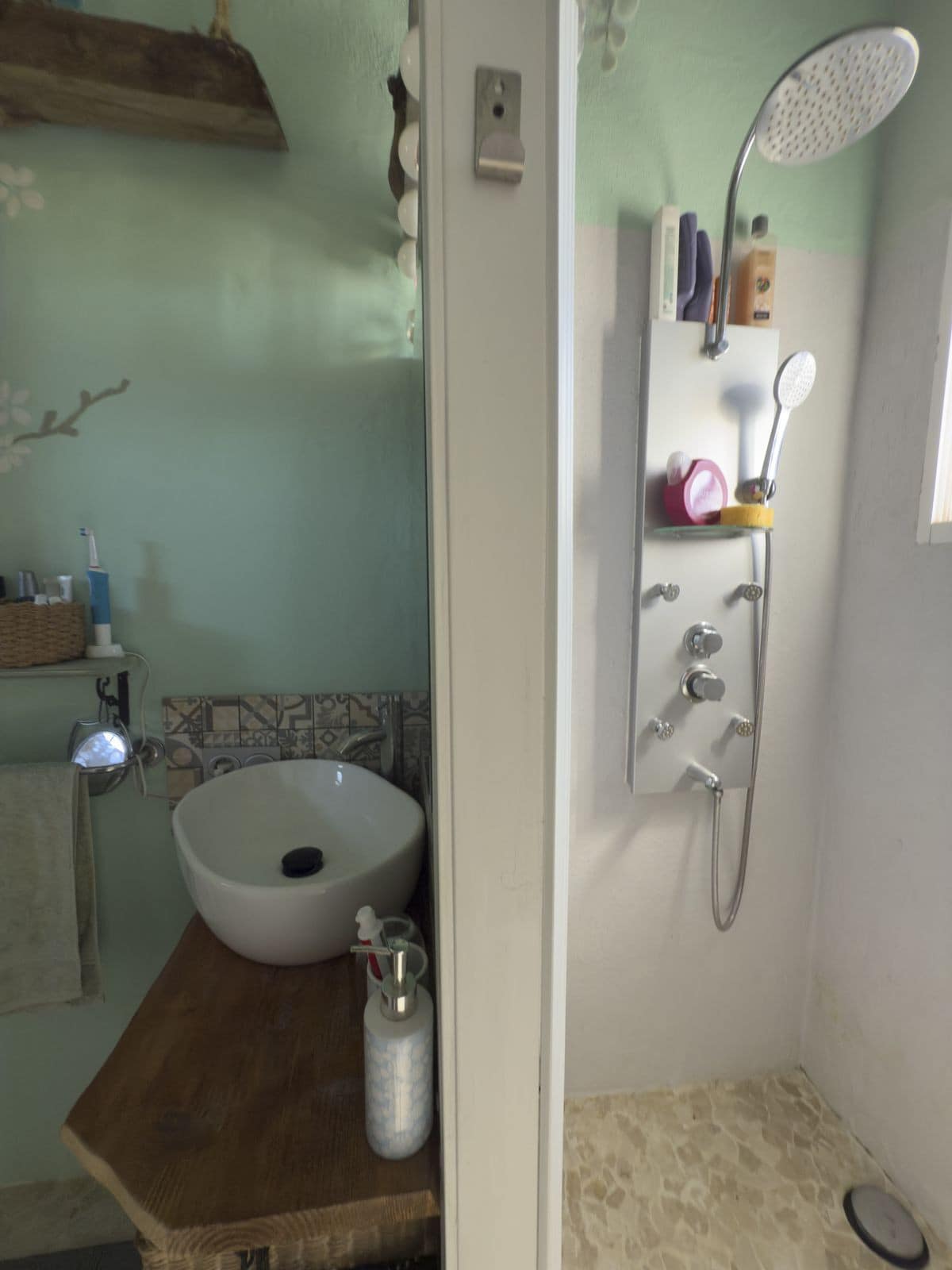 The main residence is a charming 1-bedroom, 1-bathroom home, featuring spacious terraces that showcase stunning panoramic mountain views. Additionally, the property includes a 2-bedroom, 1-bathroom mobile home, providing flexible accommodation options for guests or rental potential.