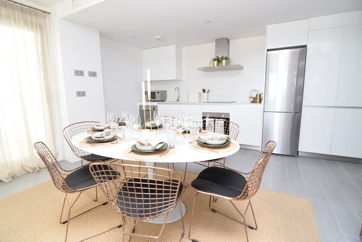 Situated just outside the center of the white village of Benalmádena Pueblo, this spacious luxury apartment offers peace and tranquility but is still close to the village with plenty of shops, bars and restaurants. It consists of an open plan kitchen/living/dining room, the en suite master bedroom and two more bedrooms sharing a second bathroom. Additionally there is a large partially covered front terrace with panoramic sea views and a small patio at the back. Underground parking space for two cars. The complex is well maintained and there's a communal pool and gym. Air conditioning hot & cold, high speed internet, wifi, alarm.