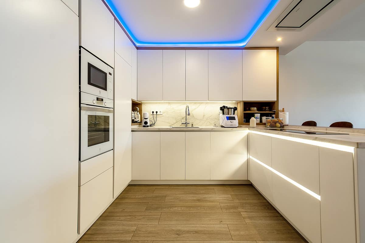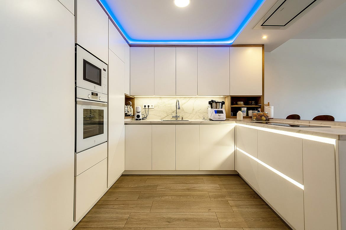 a functional, modern, fully equipped kitchen, open to the large living room to the terrace and
