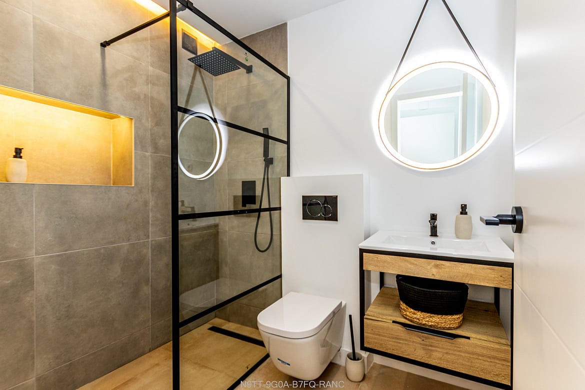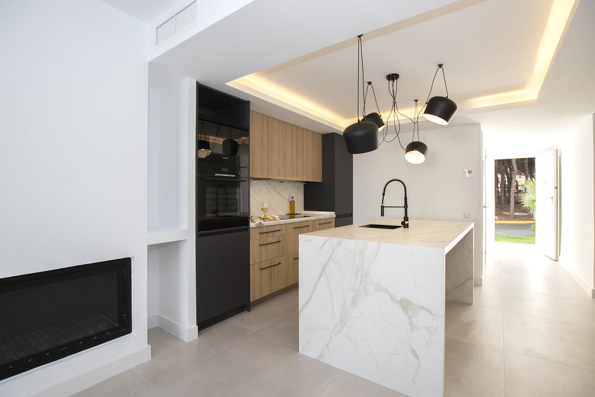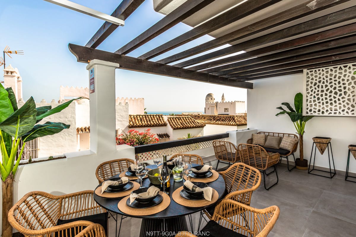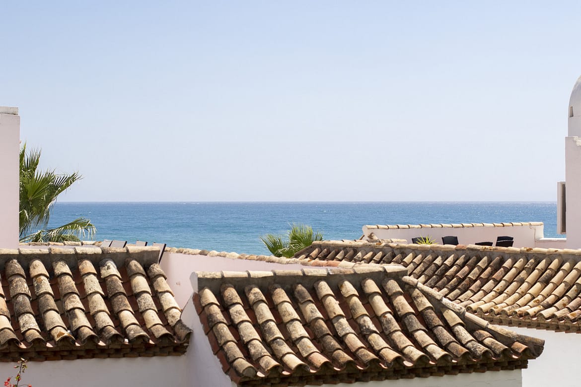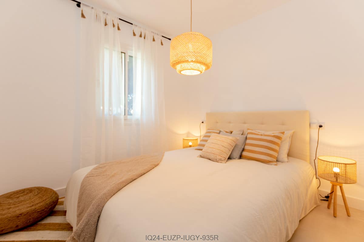 Spacious 3 bedroom apartment with 2 full bathrooms with walk-in showers in a beachfront complex with south orientation and sea views in Calahonda, Mijas Costa for sale fully refurbished in modern scandinavian style, completely furnished and fitted ready to move in.