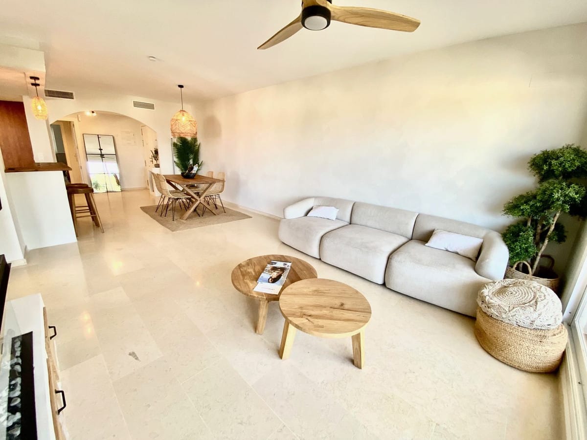 Gated community with surveillance cameras and very quiet with many gardens and 6 swimming pools. 2 km from the beach