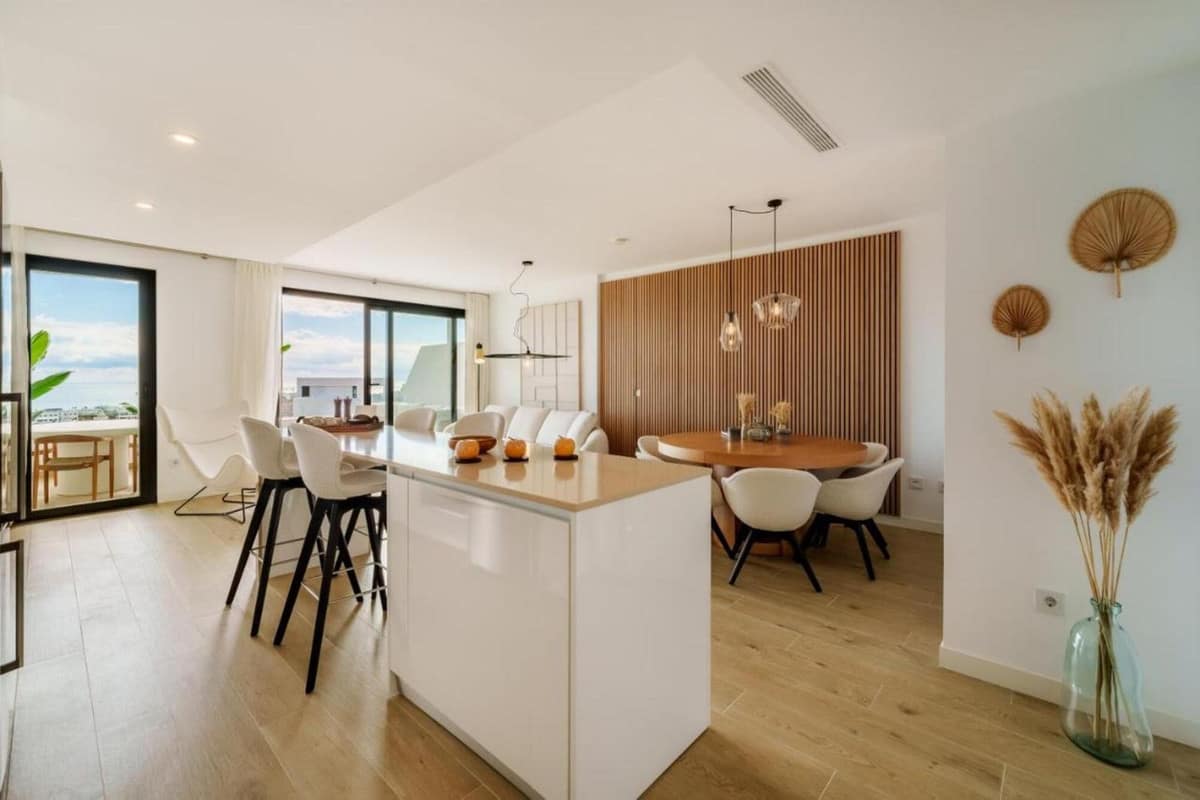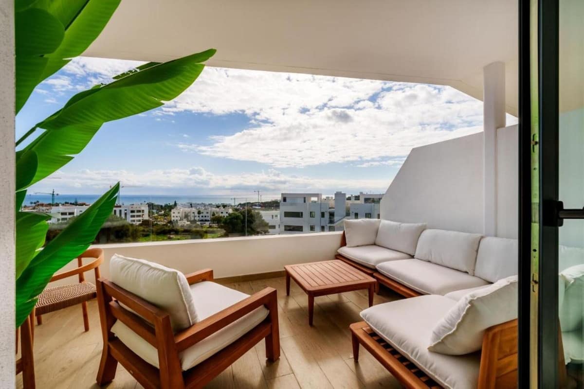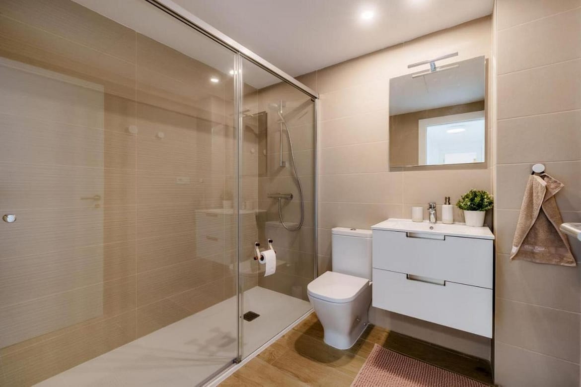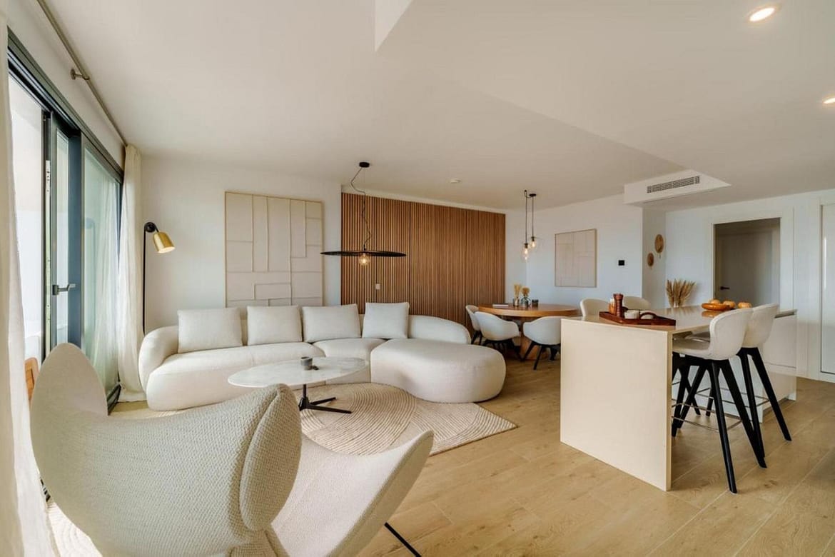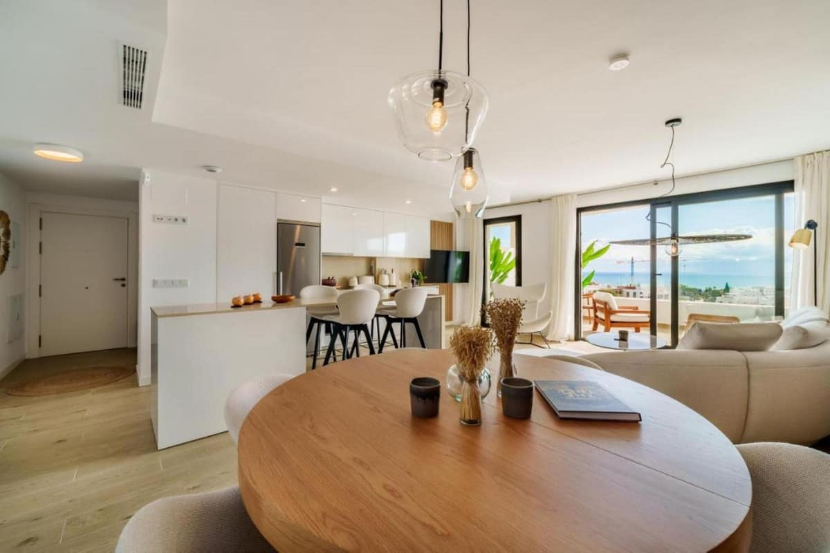 The spacious apartment with a terrace and sea views , a living room, a flat-screen TV, an equipped kitchen with a dishwasher and an oven, and 2 bathrooms with a walk-in shower. Towels and bed linen are featured in the apartment. The property has an outdoor dining area.