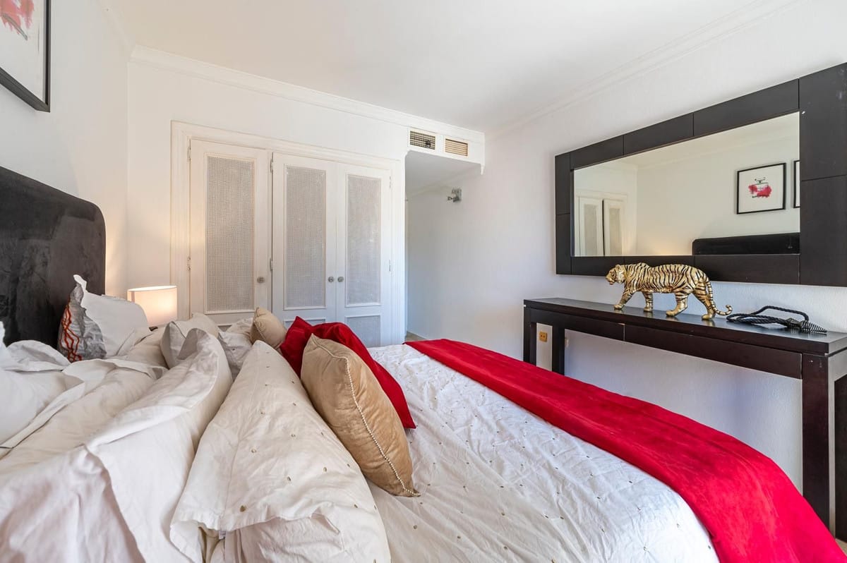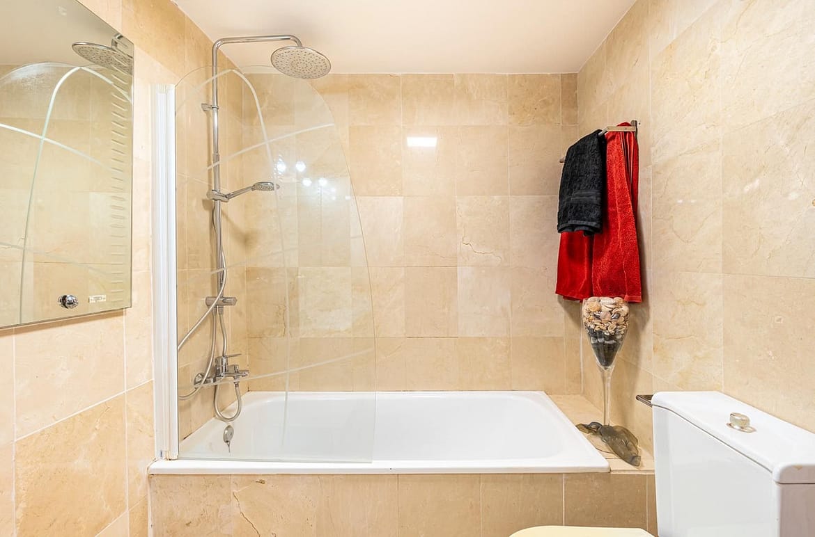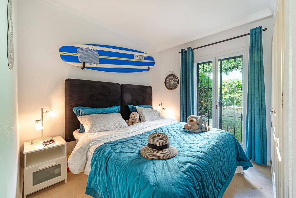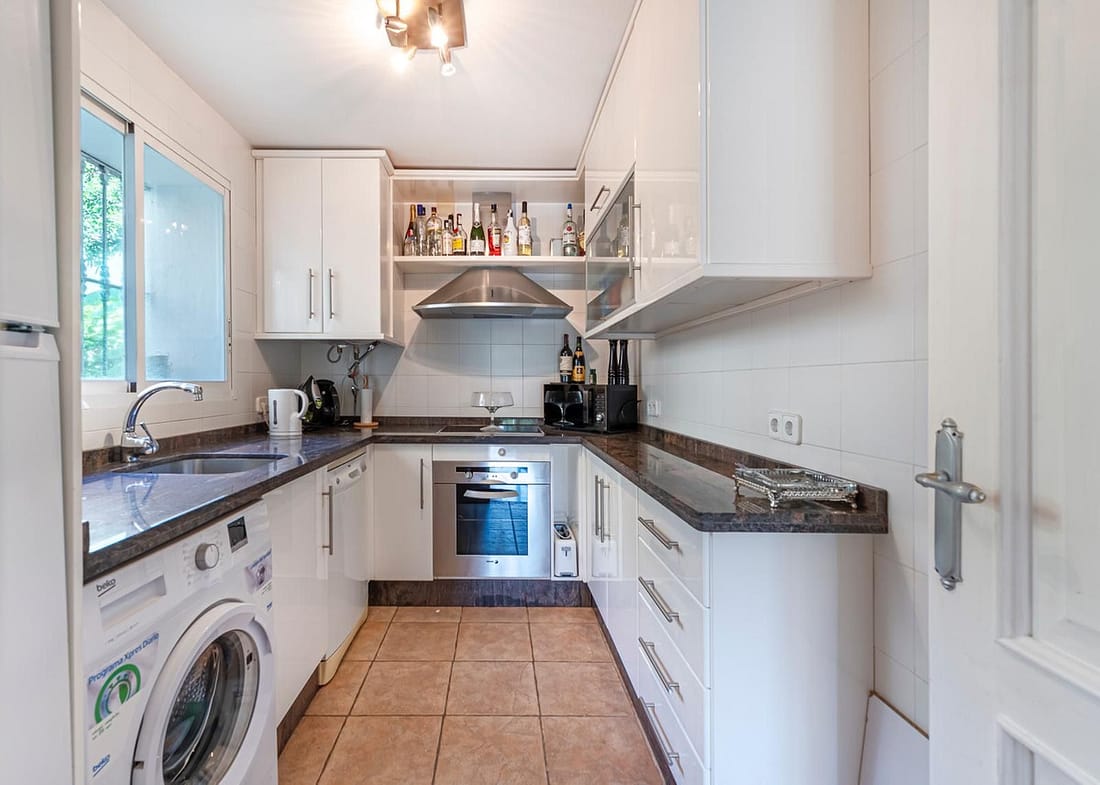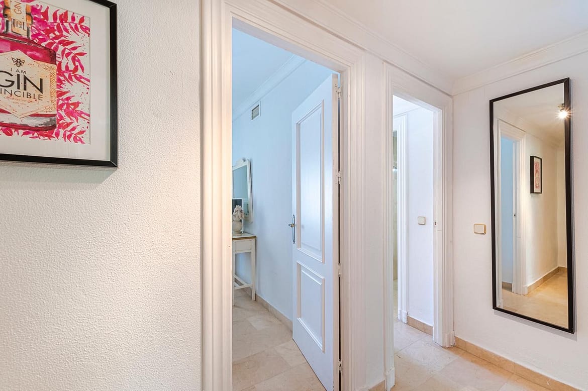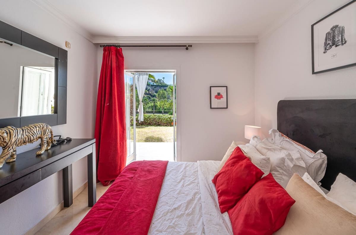 The apartment exudes tranquility and privacy, feeling more like a townhouse than an apartment. The master bedroom includes an en-suite bathroom, while the two guest bedrooms share a second bathroom. The living area opens onto a charming covered terrace, perfect for unwinding with views of the lake, golf course, and landscaped communal gardens. Additionally, an uncovered terrace area is ideal for sunbathing, and from the private garden, you have direct access to the community gardens and two pools.