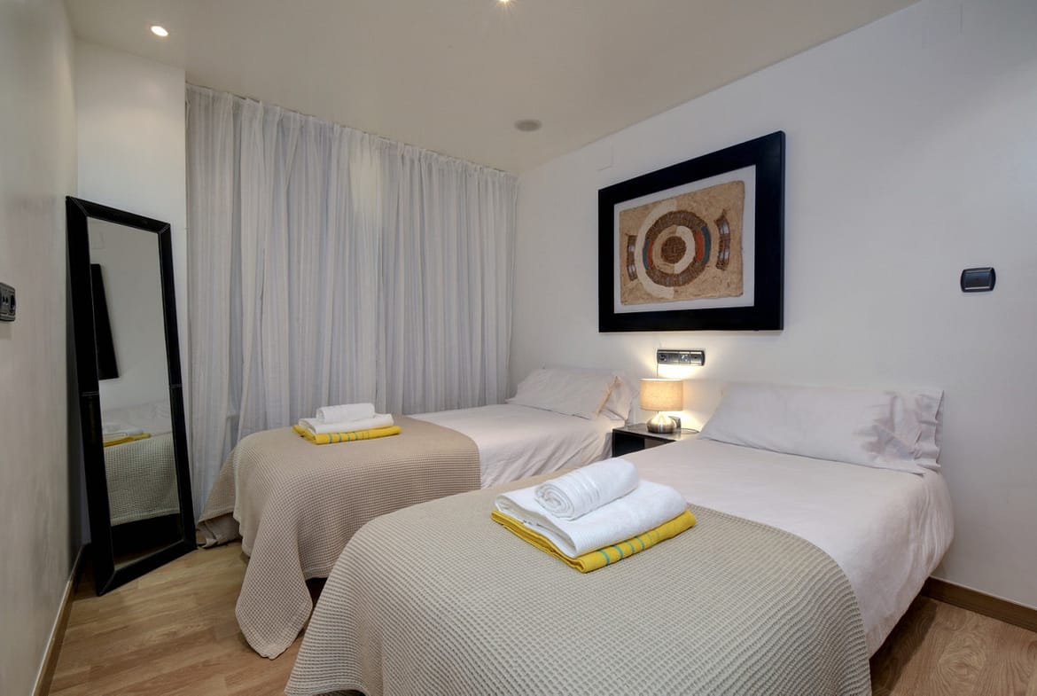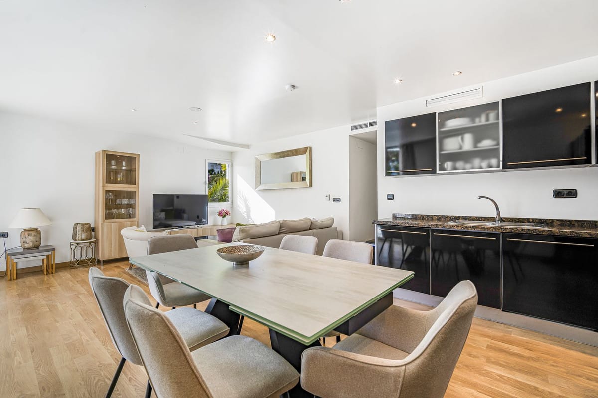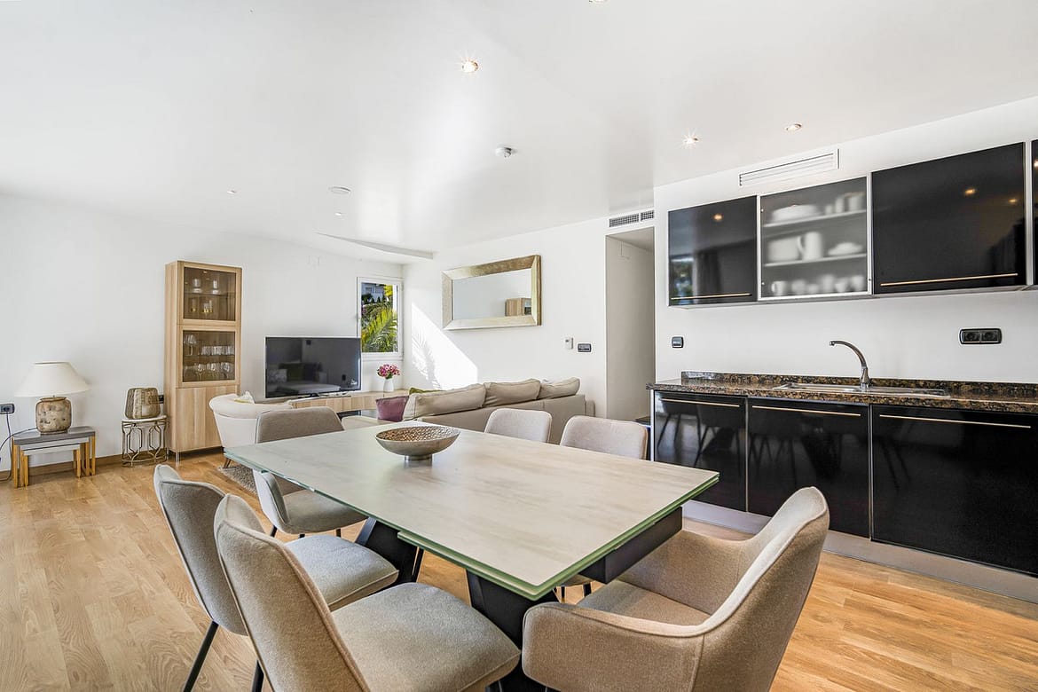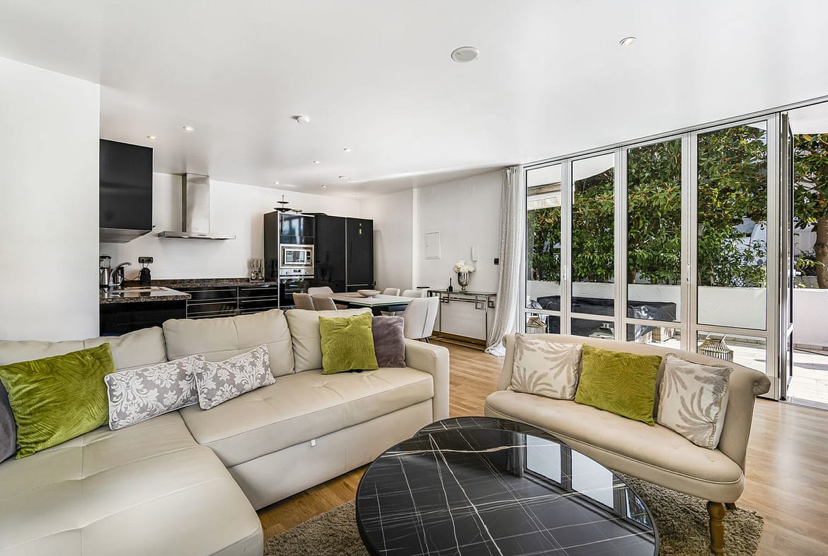 The apartment comprises of a spacious L shaped terrace, one side with a dining area with fridge and freezer, and the other a chill out area with comfy and relaxing sofas and arm chairs and mood lighting. There are even fresh herbs such as mint and coriander which you are welcome to use.