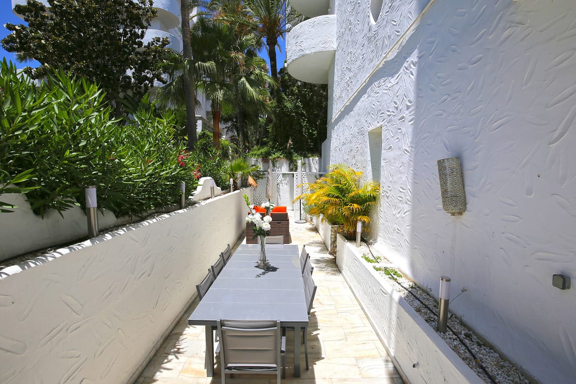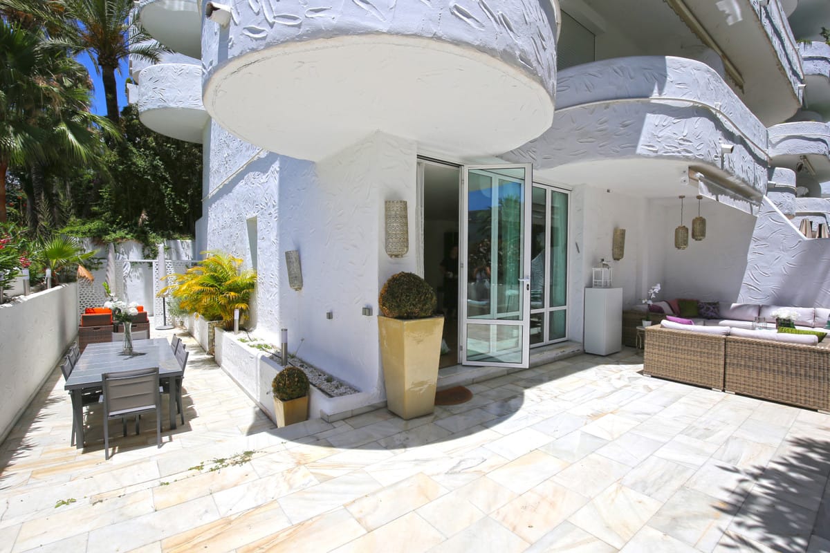 Newly decorated 3 bedroom apartment in the best location on the Golden Mile in Marbella Real, just a 2 minute walk to Casablanca beach. Beautiful and spacious terrace to enjoy the morning and afternoon sun in a very private and quiet location and all furniture and furnishings of the highest quality. Guests will enjoy expansive landscaped tropical gardens, waterfalls, fountains and flower gardens and a swimming pool. This 24hr secure and gated complex is a two minute walk to the shops, excellent restaurants, supermarkets, golf and a host of leisure facilities are all within very easy reach.
