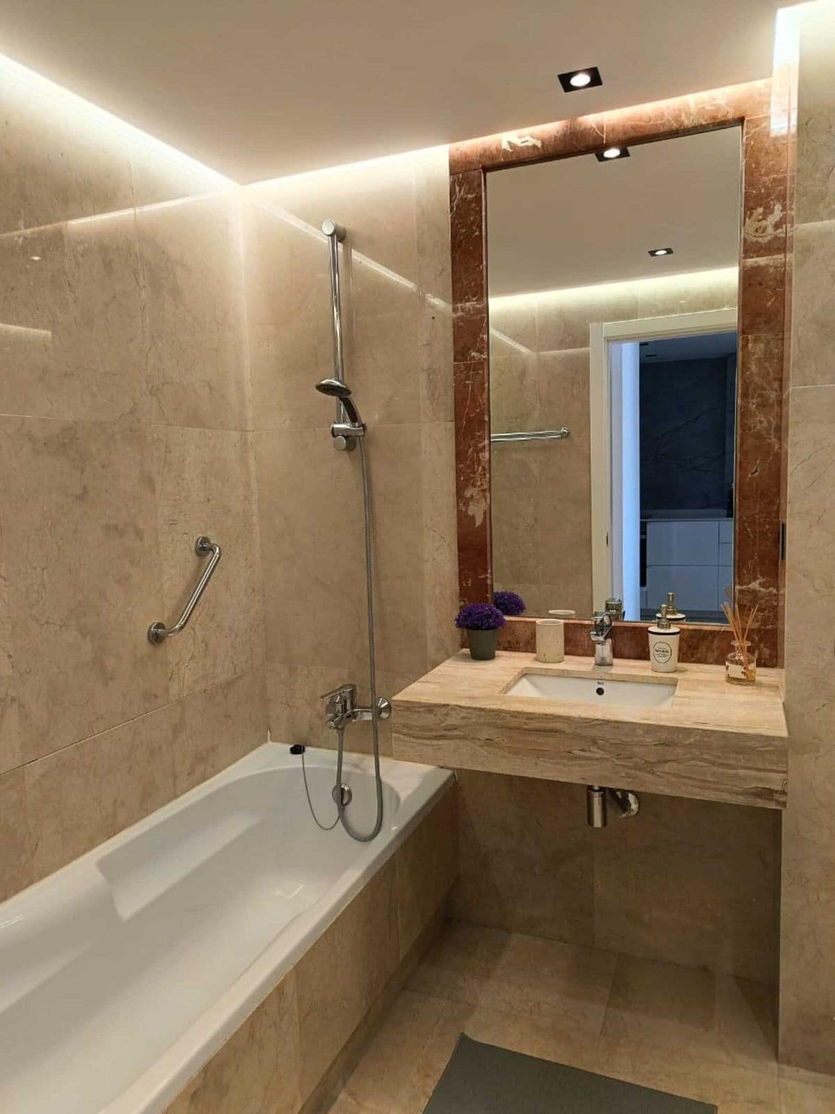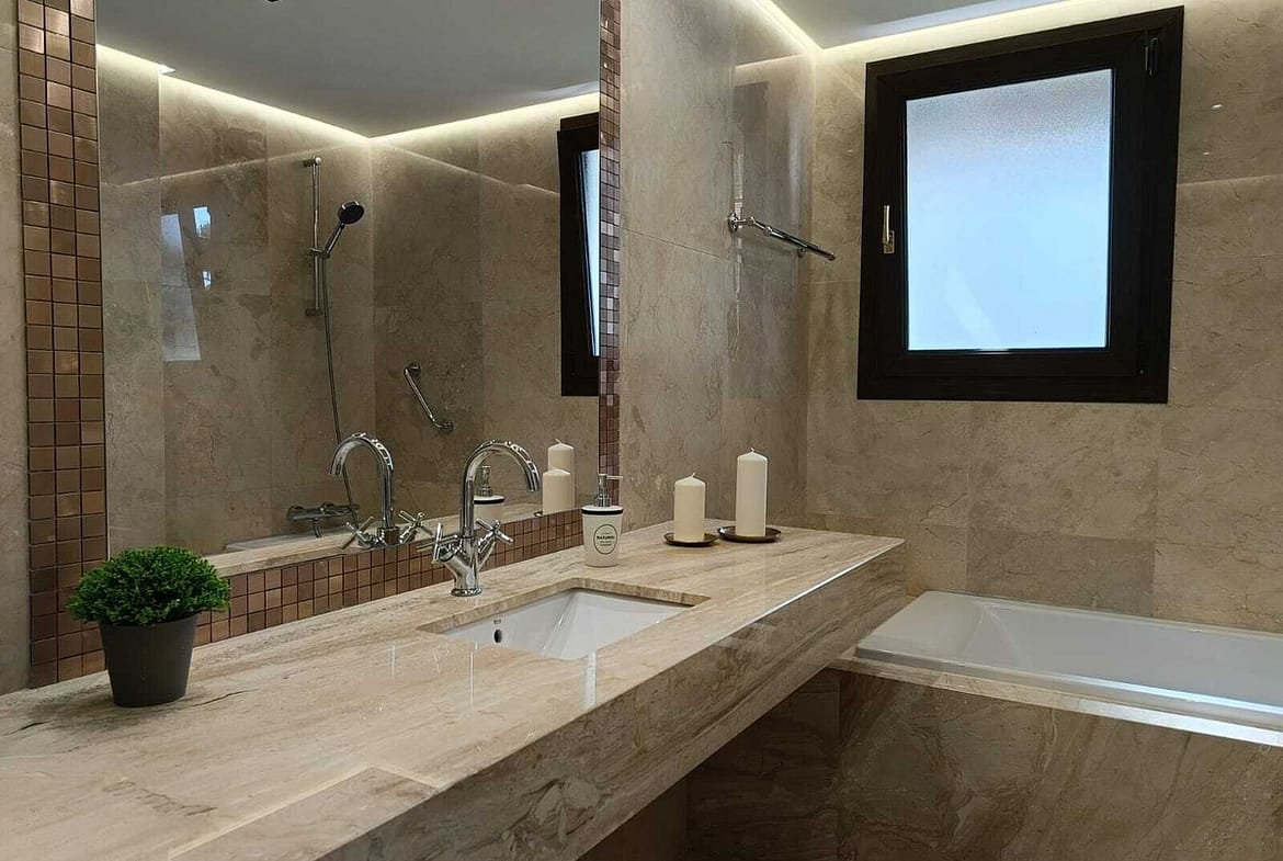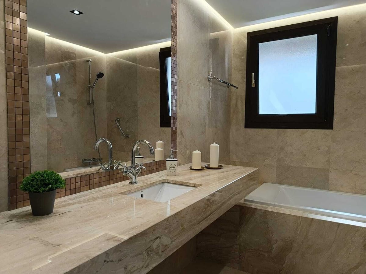 The apartment features three spacious bedrooms and two modern bathrooms, making it perfect for families or groups. The fully equipped kitchen has everything you need to prepare meals at home, while the bright living room is filled with natural light, creating a warm and inviting space to unwind.