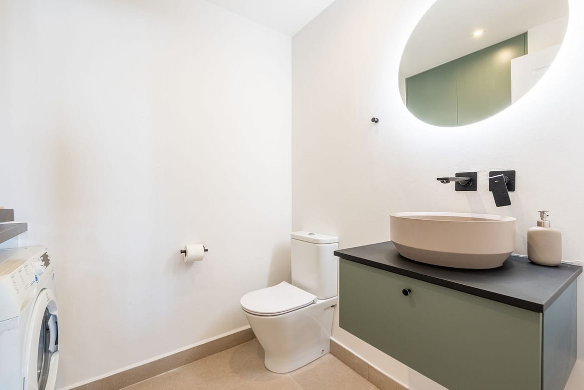 This bright and spacious three bedroom duplex is located within easy walking distance to everything.This is an open and beautiful three bedroom apartment that features a big terrace and combined kitchen and living area. Its distributed over two floors, with spacious master bedroom on the first floor with its double bed, ensuite bathroom, open walk-in wardrobe and back yard terrace. The second bedroom you find one level down with its double bed and en suite bathroom. As well the third bedroom that also have a separate bathroom and another terrace. The kitchen is fully equipped and have dishwasher, toasters, kettle and coffee machine, connected with the kitchen you have the living room with flat screen TV, Wi-Fi, a dining table and access to the terrace. On the terrace you find another dining table and a lounge group.