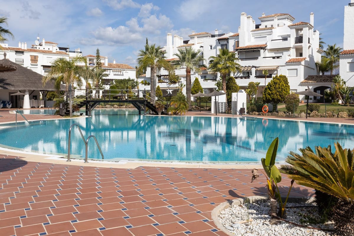 The gated community offers 24-hour security, large and well-kept gardens, and two lake-type swimming pools where you can relax. The apartment has a spacious living-dining room with access to a west-facing terrace, from where you can enjoy views of the gardens and the communal pool. The kitchen is integrated into the living room area and has a laundry room for added convenience.
