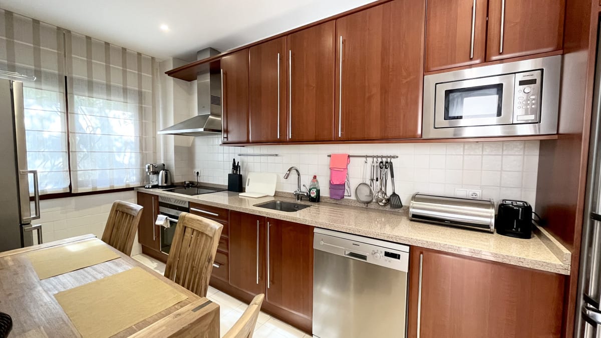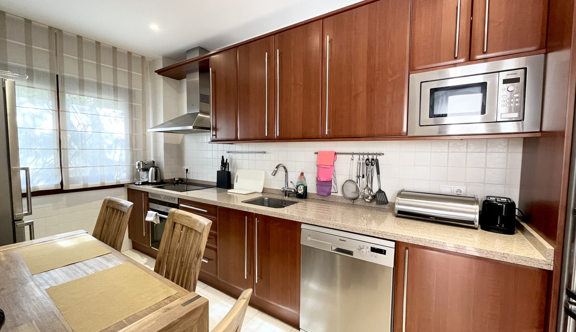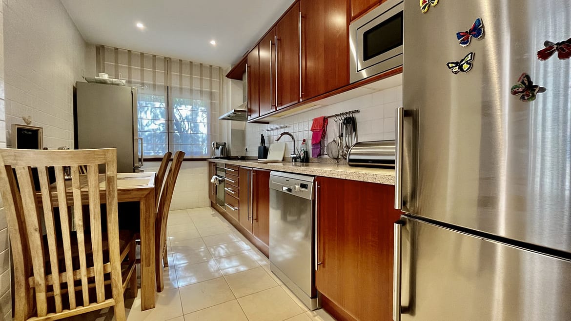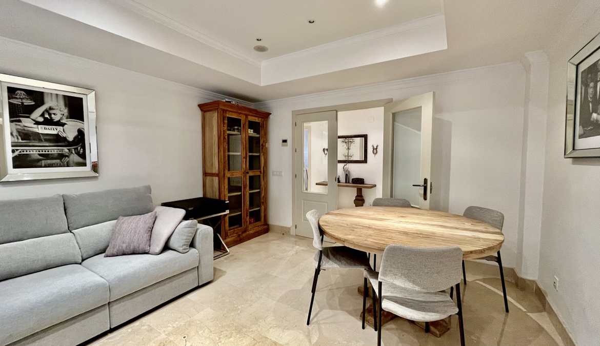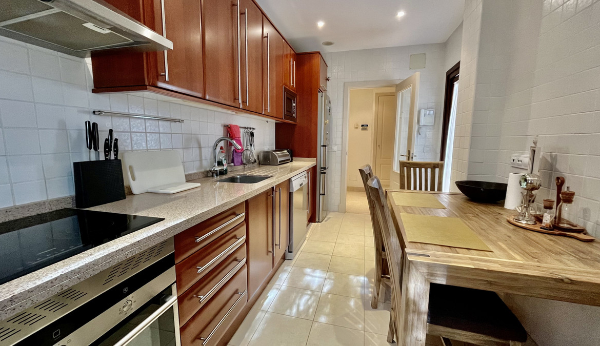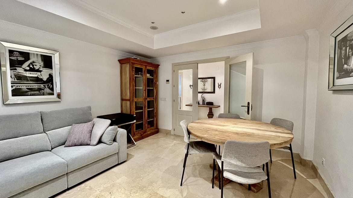 3 bed ground floor apartment in the exclusive, gated community of Lomas del Rey, exceptional high-quality construction melded with extraordinary attention to detail yield this contemporary apartment. Its expansive spaces, open concept floorplan and walls of glass create a breathtaking experience of spaciousness and light. On entering the home through the hallway, to the right, there is a large living/dining room and kitchen which open onto the expansive terrace. Straight ahead there is a corridor with guest toilet and guest suite with a walk-in closet. To the left is the sizeable master suite, also with walk-in closet and a private terrace.