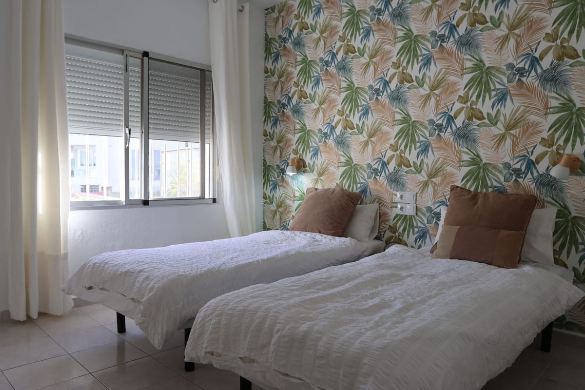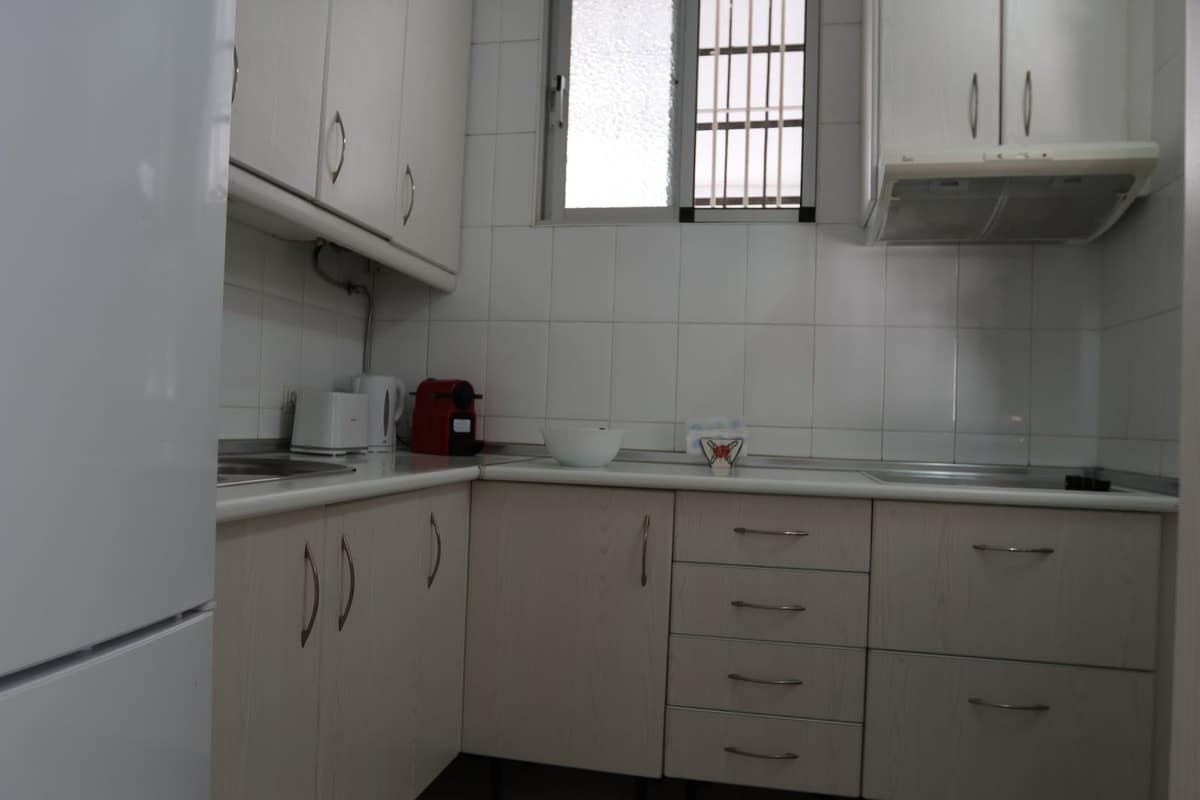 Fresh on the market for short term rental! This spacious three bedroom apartment is ideally situated near the train station in Torreblanca. It is a bright and spacious three bedroom with a large very sunny terrace. Only 20 min from the airport and only 3min walk to the beach! Complete with WIFI, Aircon in the living room & fans in the bedrooms, washing machine, microwave and nespresso coffee machine The apartment is on the ground floor and also wheelchair friendly. Peaceful setting.