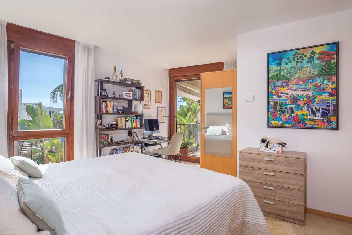 Enjoy partial views of the sea and the communal garden with swimming pool from the covered terraces.