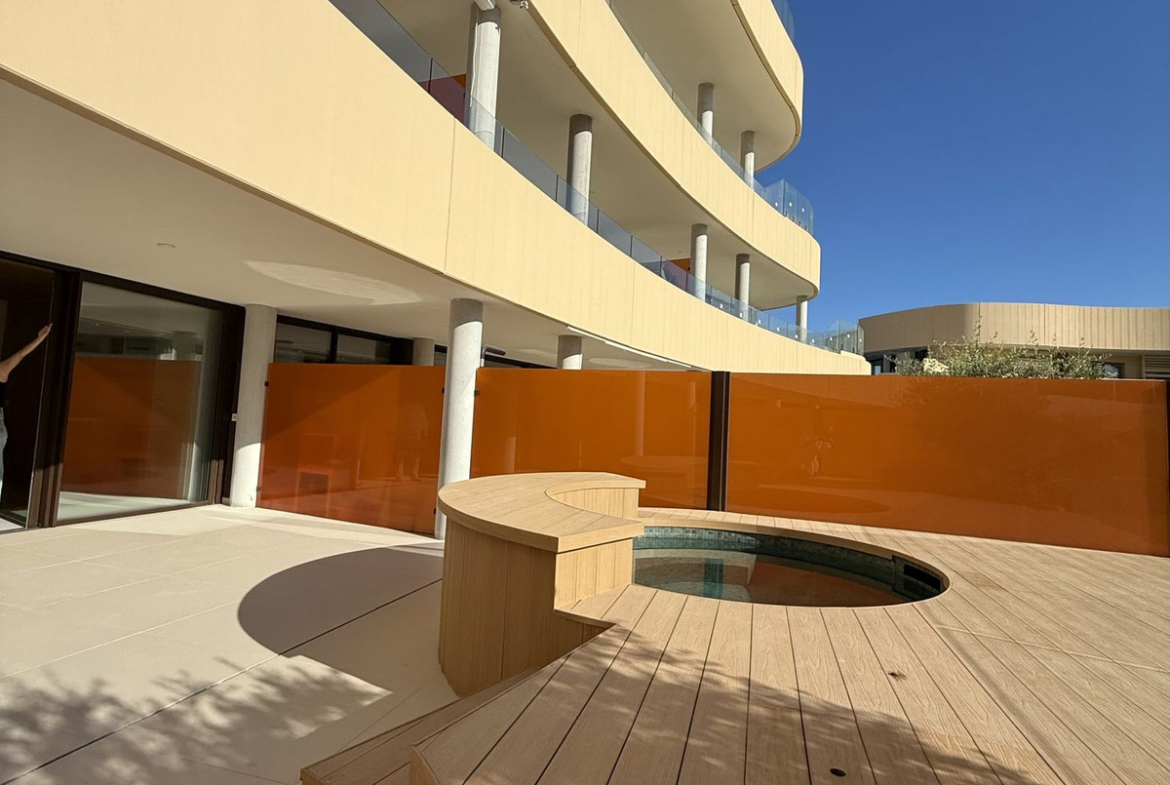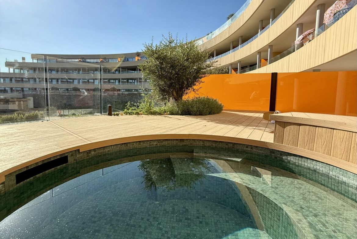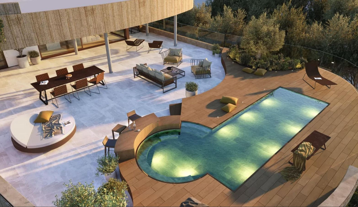 Conceived to integrate naturally into the Mediterranean landscape, this new residential complex is surrounded by green areas, open views of the sea and all the privileges of being part of the Resort ecosystem. A space that connects innovation, sustainability and wellbeing in perfect harmony. The combination of Corten steel, stone and wood gives life to fluid volumes that evoke the silhouette of a conch shell, which has become the distinctive symbol of the project.