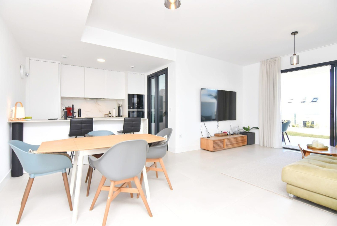 With a total of 198 m², divided into 93 m² of interior space, 30 m² of terrace and 76 m² of private garden, this recently built property (only 6 months old) offers a perfect balance between indoor comfort and outdoor living. The garden is divided into a front and rear area, and all 3 bedrooms face the back garden, ensuring privacy, quiet and cool summer evenings.