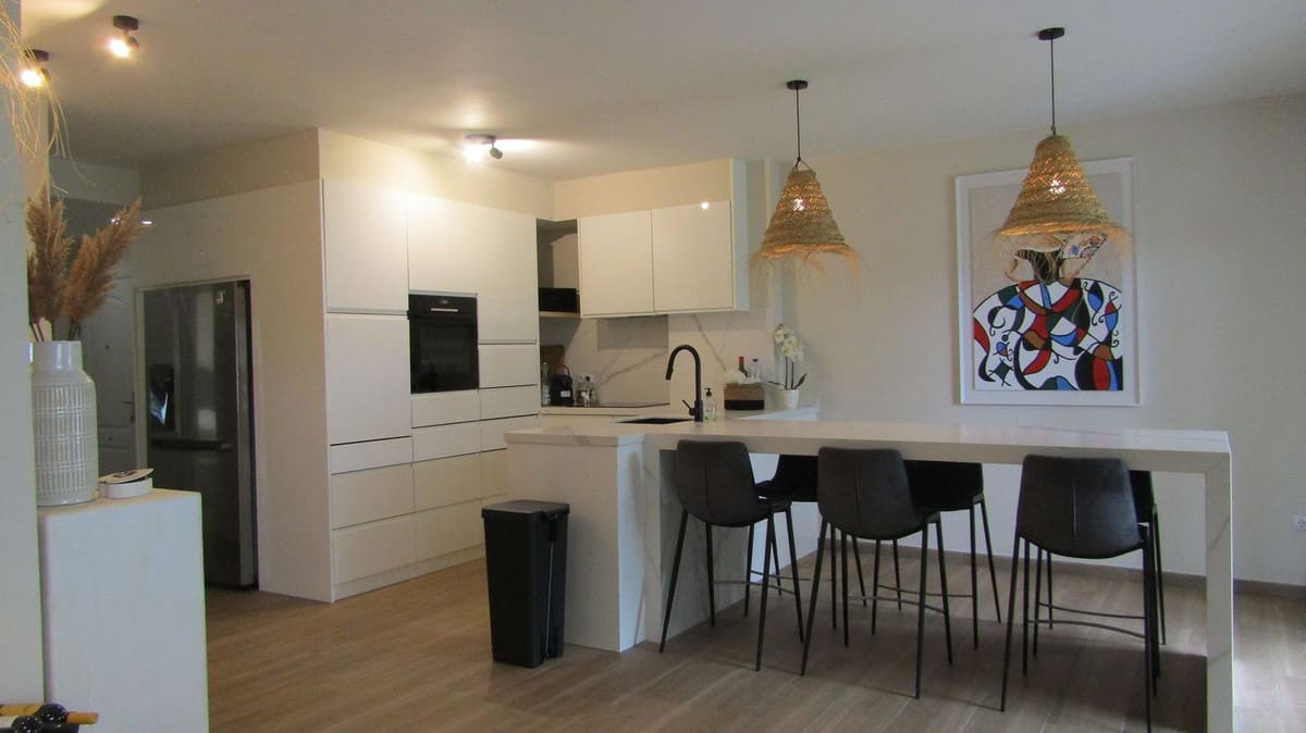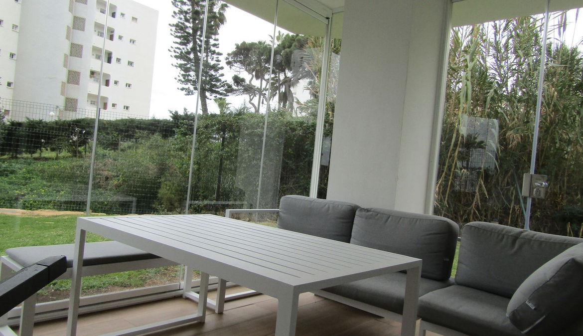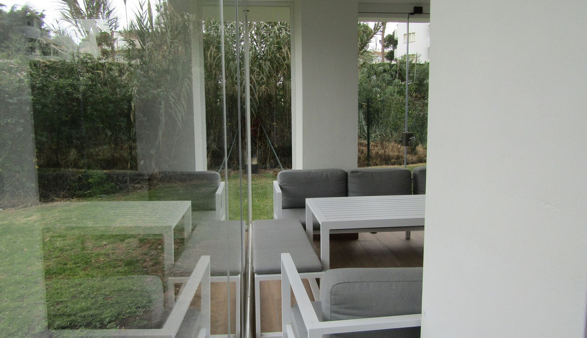 Absolute stunning 3 bedroom – 2,5 bathroom frontline beach apartment with direct access to the beach in front of the community. Completely refurbished in 2024 with high quality materials. All the windows have electric shutters, separate aircon in every room and glazed terrace with views to the garden, pool and the sea. The community offers 2 large pools as well as a children's pool and a pool bar operating from Easter to end of summer.