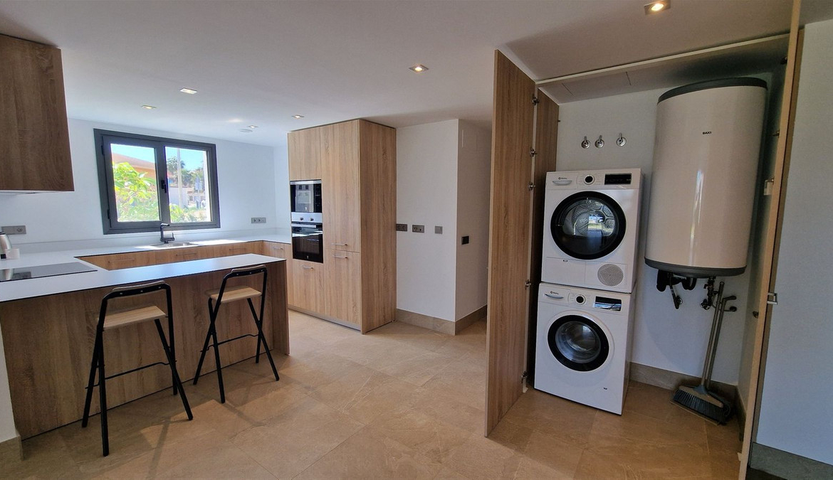 As you step inside, you are welcomed by a bright and airy layout that seamlessly connects the living room, dining area, and kitchen. The well-thought-out design provides the ideal setting for both social gatherings and relaxation. With large windows allowing natural light to flood in, you'll be drawn towards the terrace and private garden. The kitchen is fully equipped with modern appliances, breakfast bar and a stylish design.