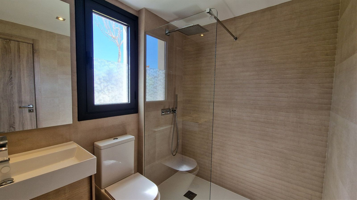 The apartment features 3 spacious bedrooms, The master bedroom with direct access to the terrace is a peaceful retreat with plenty of room for a large bed and storage. The adjoining en-suite bathroom is equipped walk in shower with modern and elegant finishings. The guest bedrooms are equally welcoming and offer plenty of space for guests or family members with access to a shared bathroom.