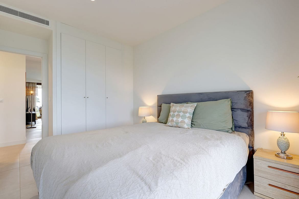 The property offers three generously sized double bedrooms, each enjoying direct access to the terraces and beautiful views over the private garden that surrounds the home, creating a seamless indoor–outdoor lifestyle. Two stylishly appointed bathrooms further enhance the sense of quality and sophistication throughout.