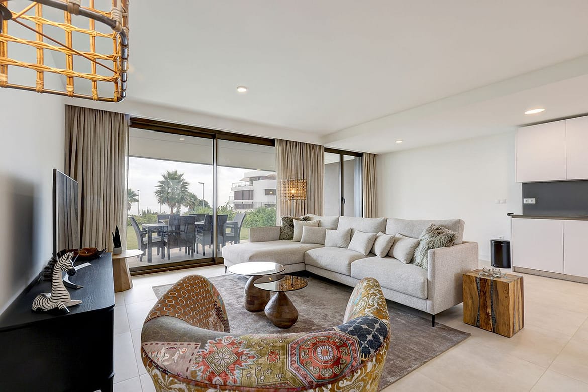 This meticulously designed apartment welcomes you into a refined world of comfort and contemporary style. The expansive living area is flooded with natural light and flows effortlessly into a fully equipped, open-plan kitchen—perfectly conceived for both everyday living and entertaining.