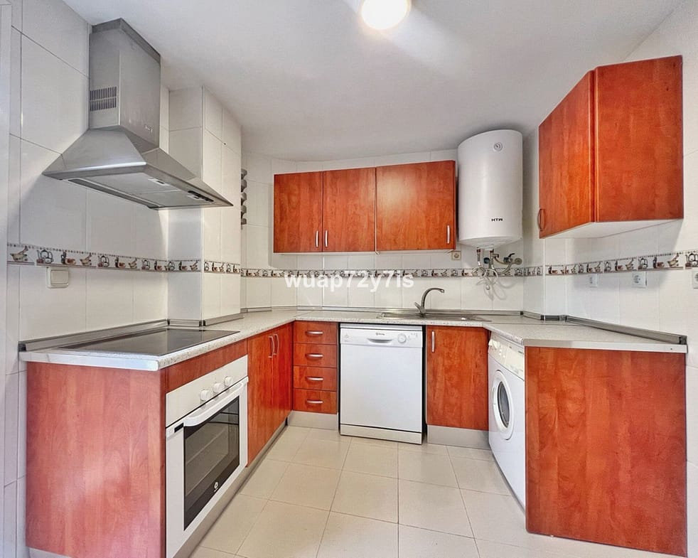 This three-bedroom apartment is located in the Costalita urbanisation in Estepona East. As you enter the apartment, you’ll find the living room on your left, which opens up to a covered terrace. On the right-hand side, there is a fully equipped kitchen with another terrace. Walking straight down the hallway, you’ll come to three bedrooms and two bathrooms. One of the bedrooms features an en-suite bathroom for added comfort. Residents of the urbanisation also have access to a shared swimming pool.
