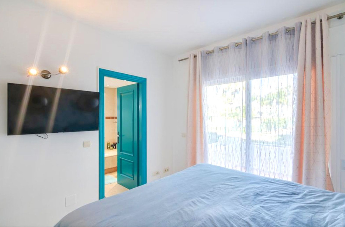 The living-dining room, large and bright, extends to the various terraces of the apartment, creating a perfect atmosphere to enjoy the Mediterranean climate. In total, the property has 3 terraces, each offering exceptional views of the meticulously maintained Mediterranean gardens, providing a unique spot for relaxation and privacy. These terraces are the ideal place to enjoy outdoor meals, reading, or simply unwind with the gentle sea breeze.