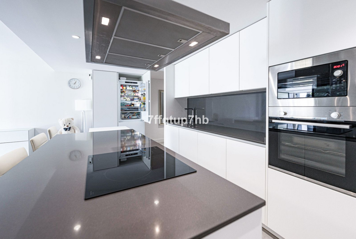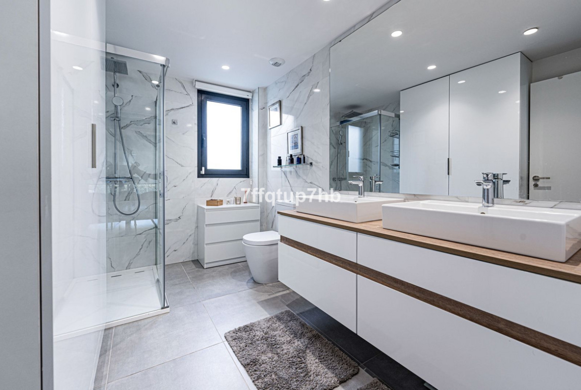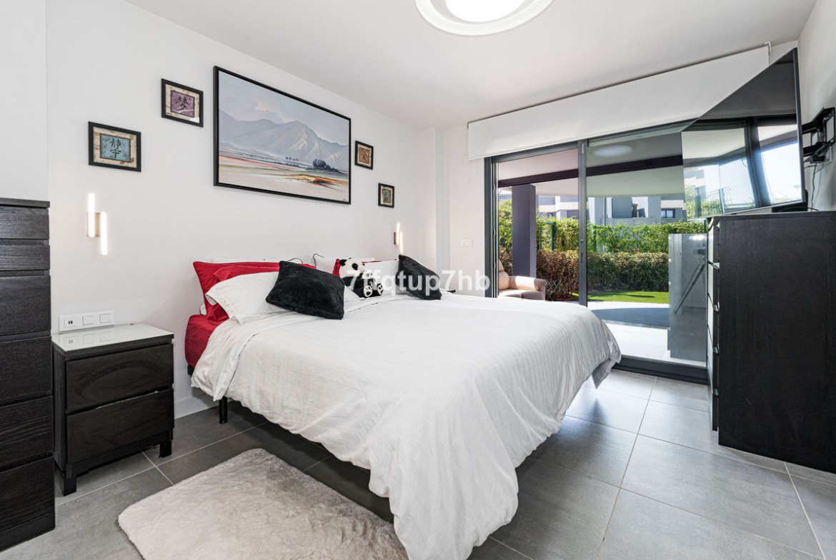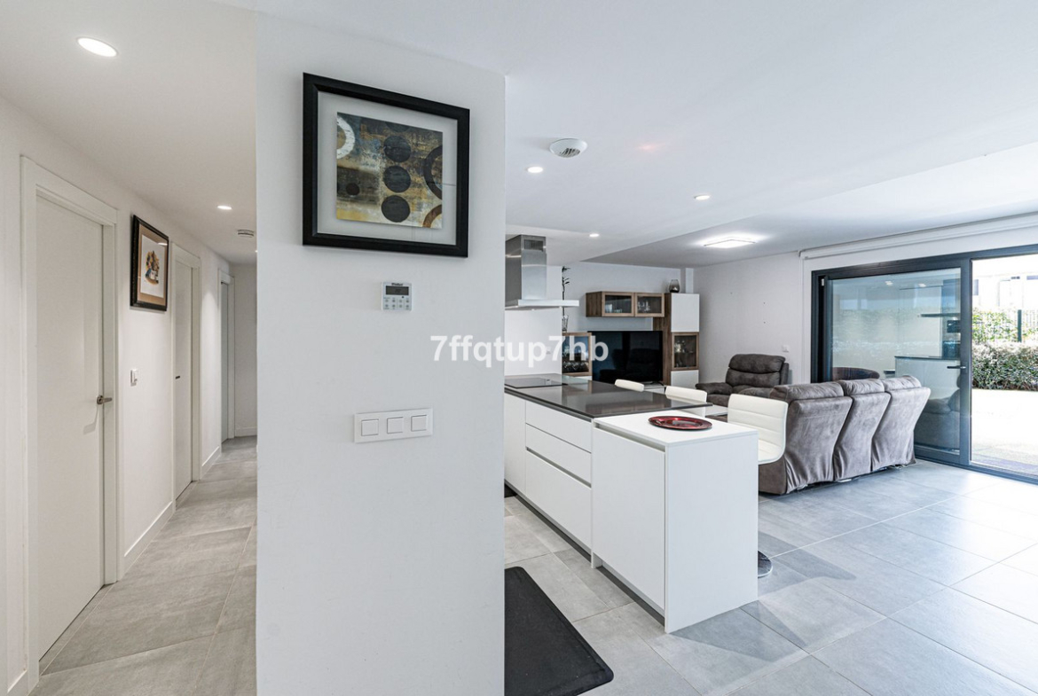 This 3-bedroom apartment features an open-plan design, seamlessly integrating a modern, fully equipped kitchen with the living area. The space opens onto a spectacular south-facing terrace and a private 80 m² garden, perfect for basking in the endless sunlight that characterizes the Costa del Sol.